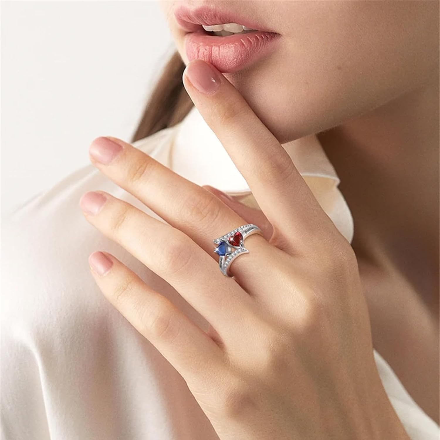 10k 14k 18k Gold 2 Birthstones Rings Mother’s Ring With Names Personalized 2 Birthstones Rings for Women Real Gold Customized Name Rings for Mom Jewelry for Mothers Day
