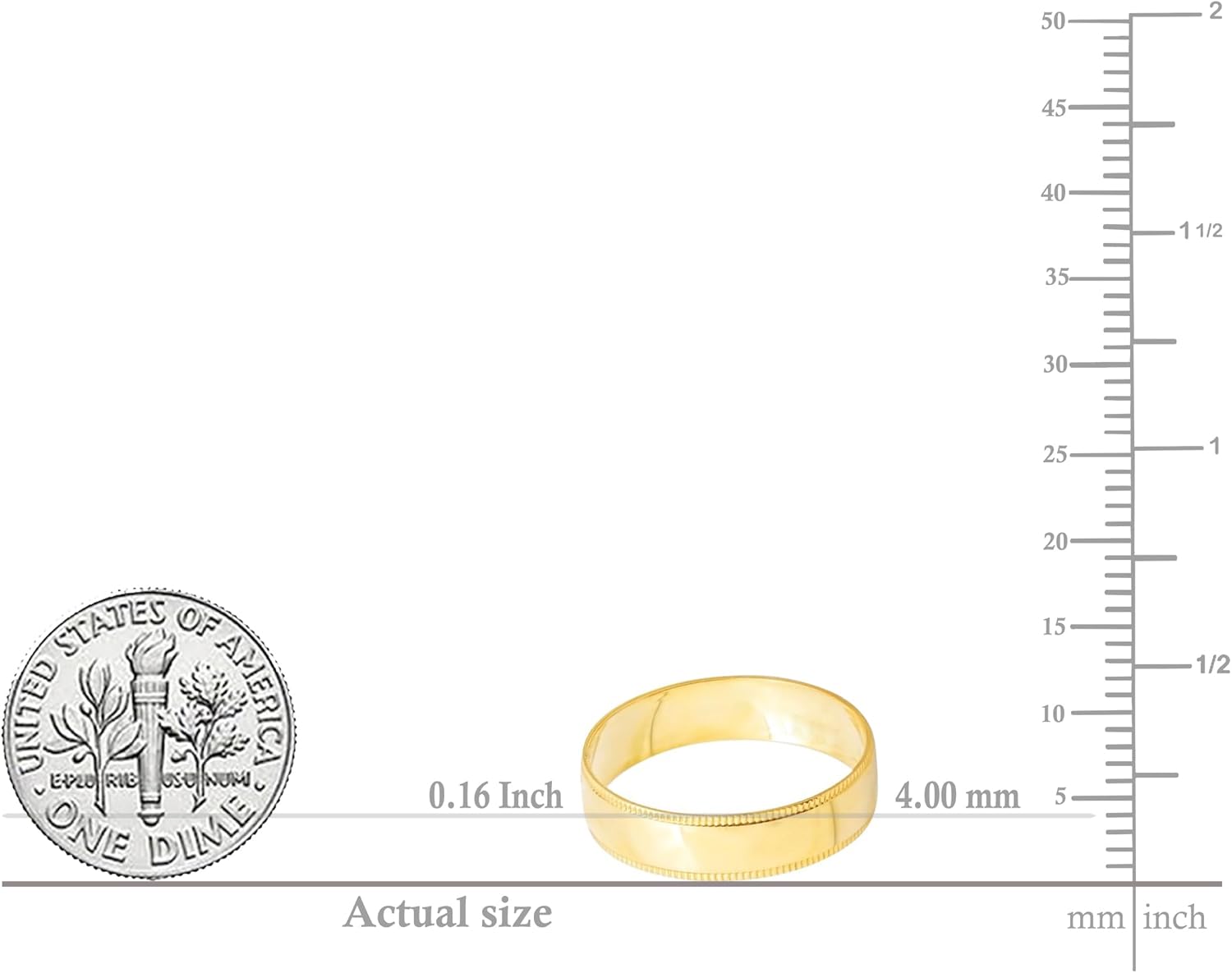 10k Yellow Gold Men’s Ladies Unisex Ring Wedding Band 4MM Milgrain Domed Plain Shiny Polished Traditional Fit (Available in Sizes 5 to 13) size 6