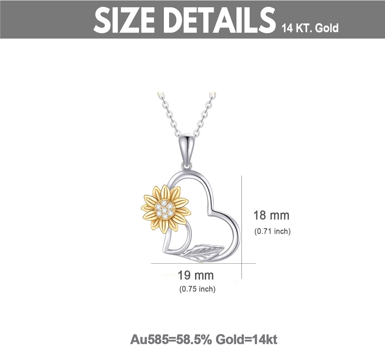 14k Gold Diamond Sunflower Heart Necklace for Women, You are my sunshine Real Gold Love Jewelry Gifts for Wife Girlfriend, Present for Her 16″-18″