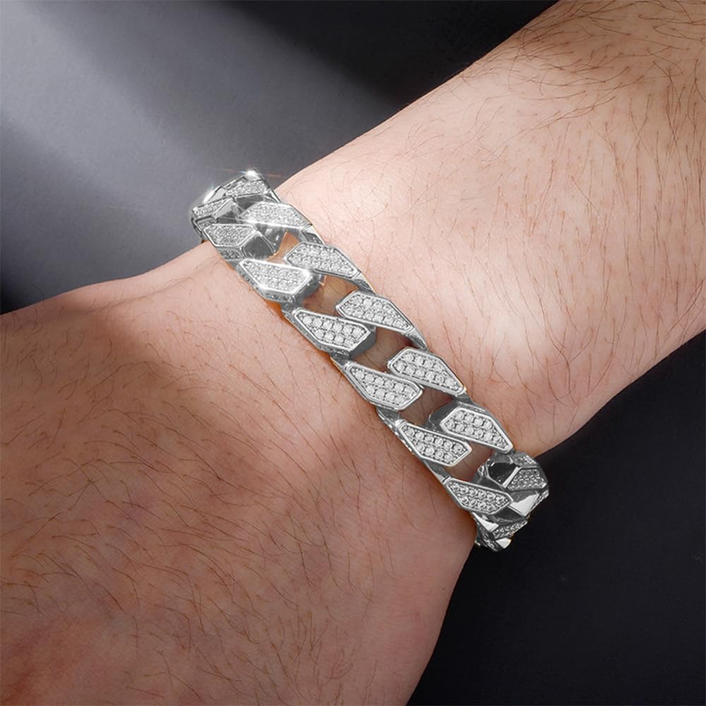 14K Gold Men’s Bracelet, Marquise Cut Moissanite Miami Cuban Hand Chain, Luxe Gift for Special Days or Fashion-Conscious Males