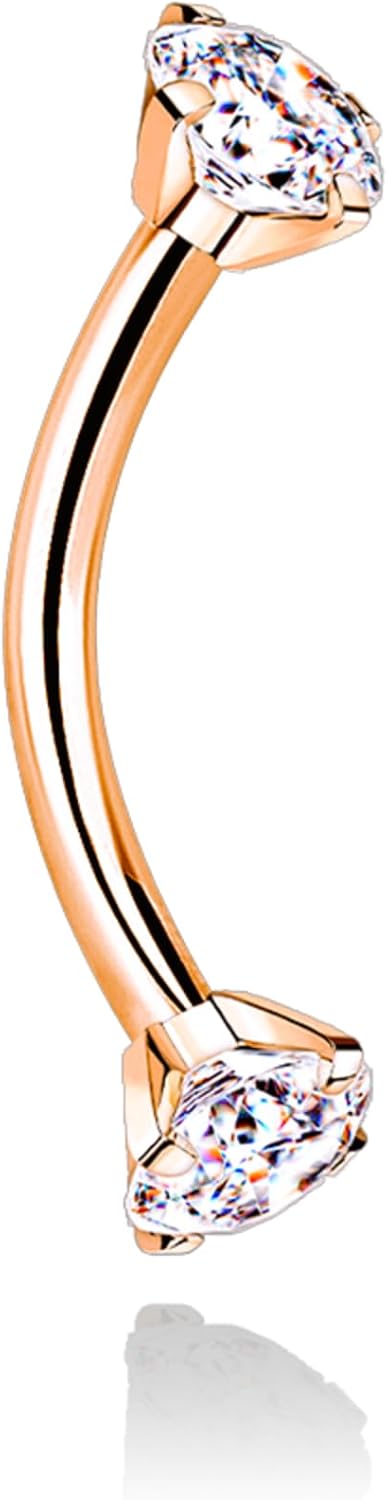 CUSHIONBLUE Fine Jewelry : 14K Solid Gold Sparkly twin diamond (0.20ct) curved piercing, Eyebrow Rook Piercing, Daith Earring, Minimalist Jewelry, Gift For Woman. This beautiful Sparkly twin diamond curved piercing set in real 14k solid Gold and You can also choose if you want this Dainty Small Piercing in 10K, and 925 Silver. This Sparkly twin diamond curved piercing is a perfect gift for wife,valentine, or friend. It is a special gift for valentine’s day, weddings, anniversaries, birthdays, Halloween, Christmas, Easter, Stag Party, New Year’s, and any holiday. Piercings: Gold piercing jewelry is gaining popularity these days. Fashionistas all over the world have appreciated the elegant rings and rods from the leading designers of jewelry workshops and are happy to buy such original accessories. Gold piercing is a fashionable and stylish accessory designed to emphasize the originality and originality of its owner. Our catalog contains a wide range of jewelry for a piercing in the navel, nose or eyebrow… 𝐄𝐚𝐫𝐫𝐢𝐧𝐠 𝐈𝐧𝐟𝐨𝐫𝐦𝐚𝐭𝐢𝐨𝐧 || Diamond Clarity: VVS-VS || Diamond Color: Colorless || Diamond Shape: Round || Number of Diamond: 2 pcs || Diamond weight: 0.20ct || Diamond Type : Moissanite || Item Weight: 1.36g Earring Size: Height of bar: 10mm Gauge : 16G