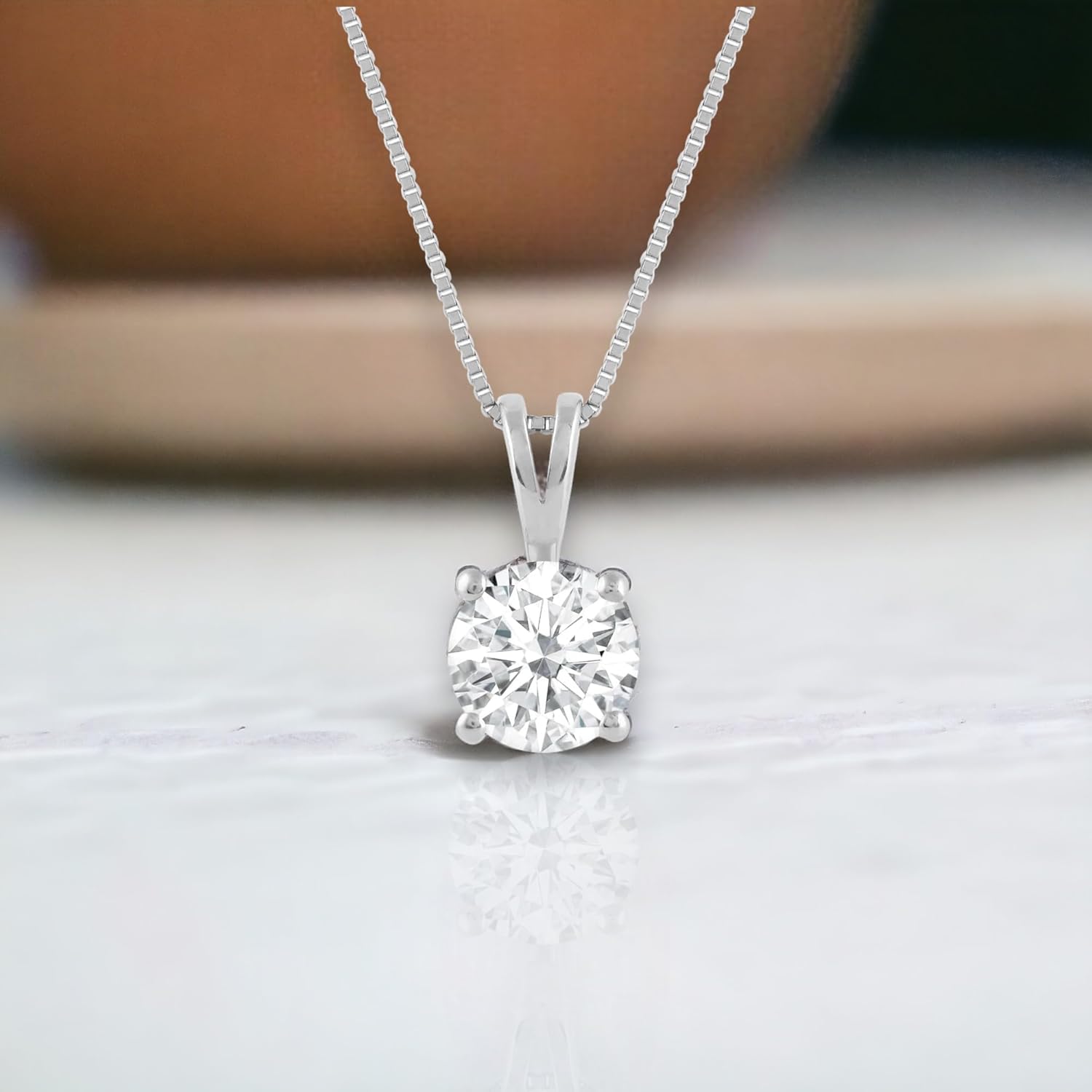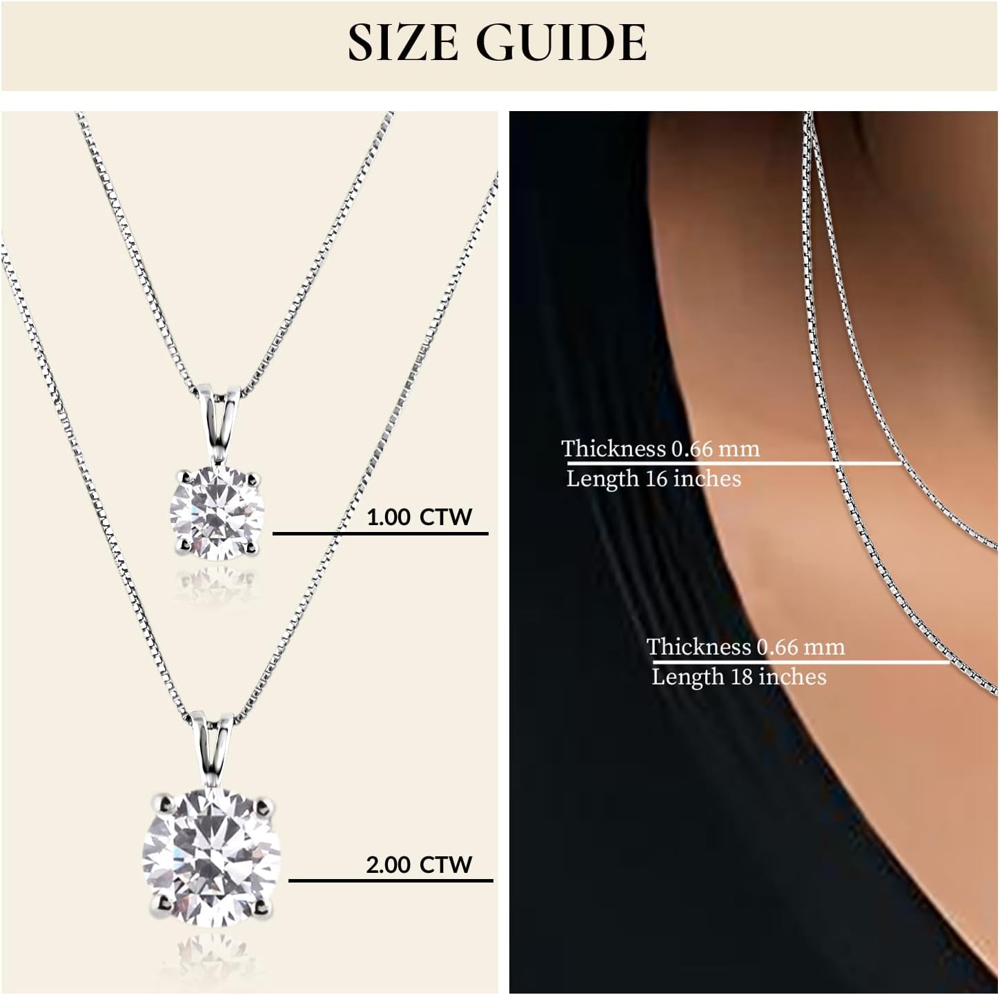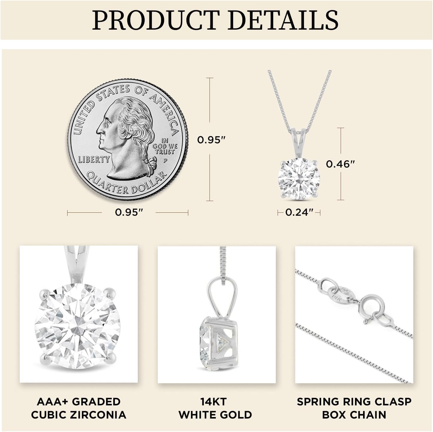 14K Solid White or Yellow Gold Pendant Necklace | Heart Cut Cubic Zirconia Solitaire | 2 Carat | 16 or 18 Inch Box Link Chain | With Gift Box