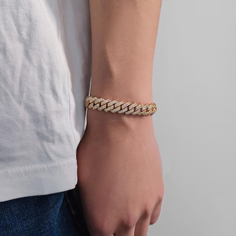 18K gold men’s diamond bracelet, Cuban style with moissanite inlay, full of fashion and personality, showcasing male charm