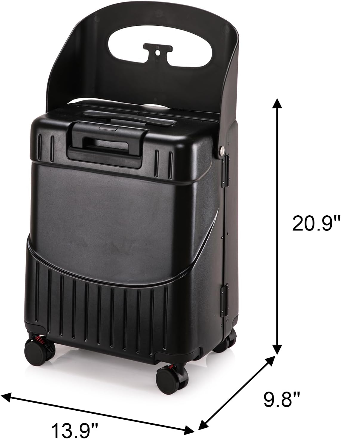 20 Inch Hardshell Carry On Suitcase with Child Seat, Black Travel Luggage with Front Compartment & 4 Lockable Spinner Wheels, TSA Lock, USB Port, Luggage Cover, Safty Seatbelt(Black