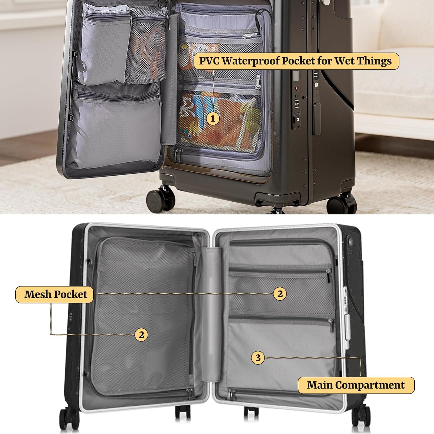 【Better Materials】This suitcase is made of PC and ABS materials and reinforced with an aluminum frame for durability and lighter weight, with a textured surface design to minimize scratches