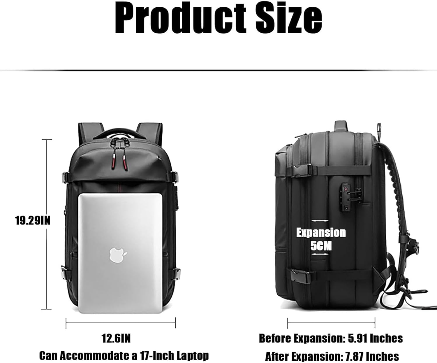 Expandable Capacity: Expandable with vacuum compression to a capacity of up to 60 liters, equivalent to a 24-inch rolling suitcase, while maintaining a compact form for versatile travel needs