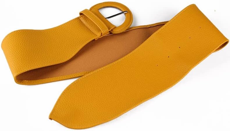 Belt Women Wide Leather Belts Dresses Blouse Buckle Ladies Long Belt (Color : Yellow, Size : One Size)