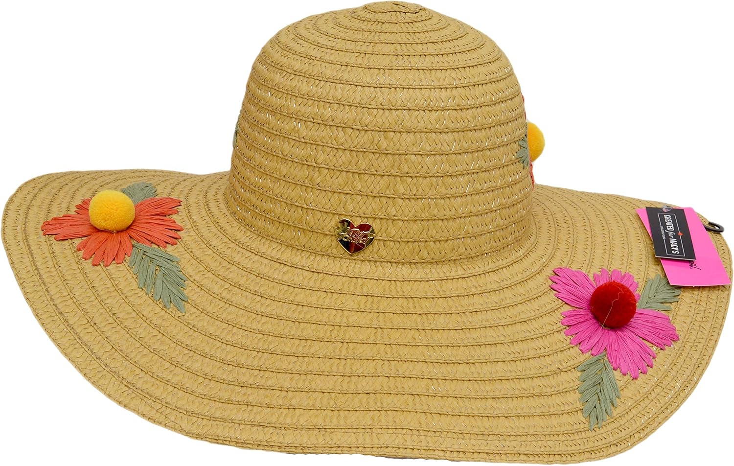 Betsey Johnson Womens Juniors Floral Bliss Pom Pom Floppy Hat One Size Fits Most