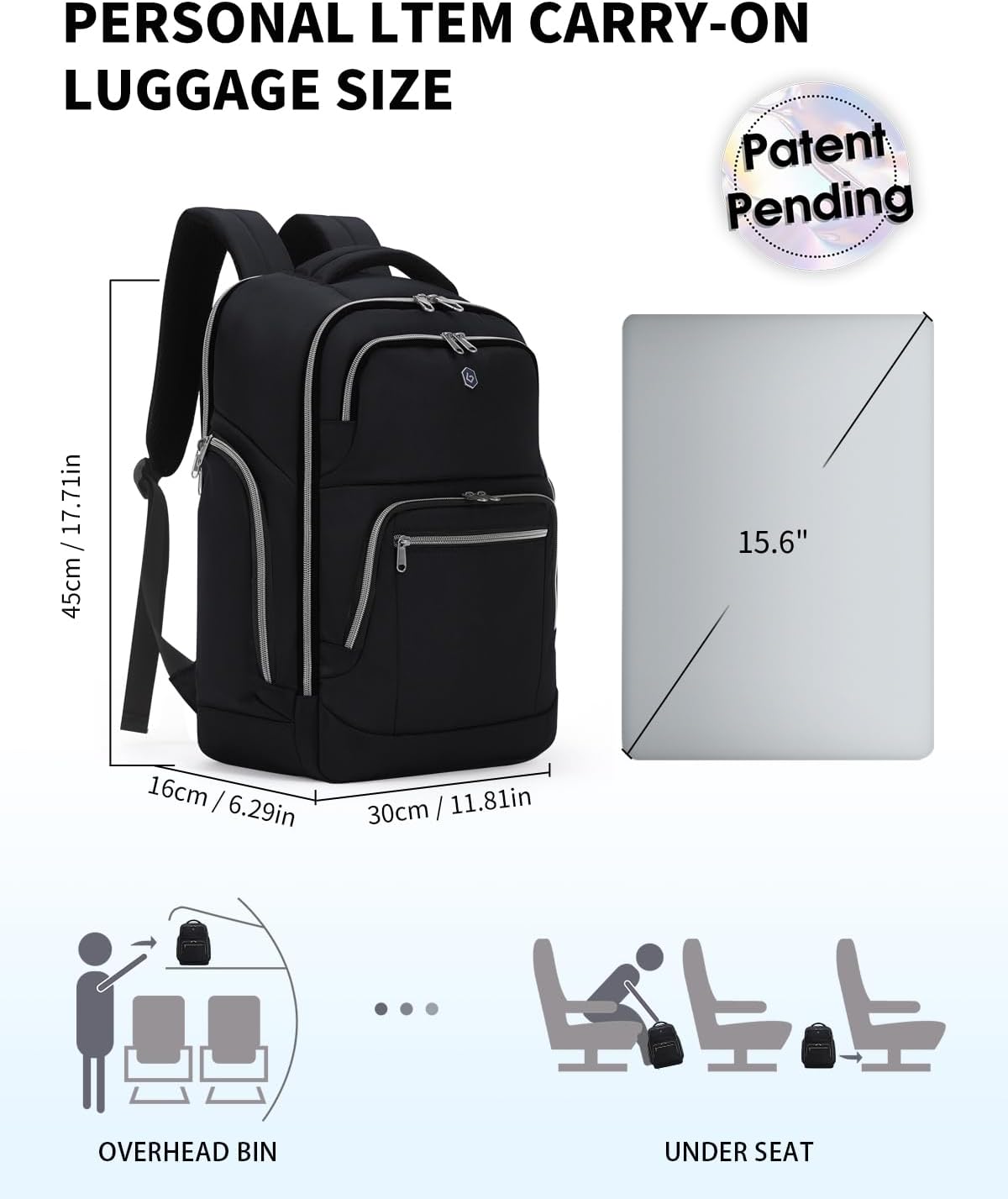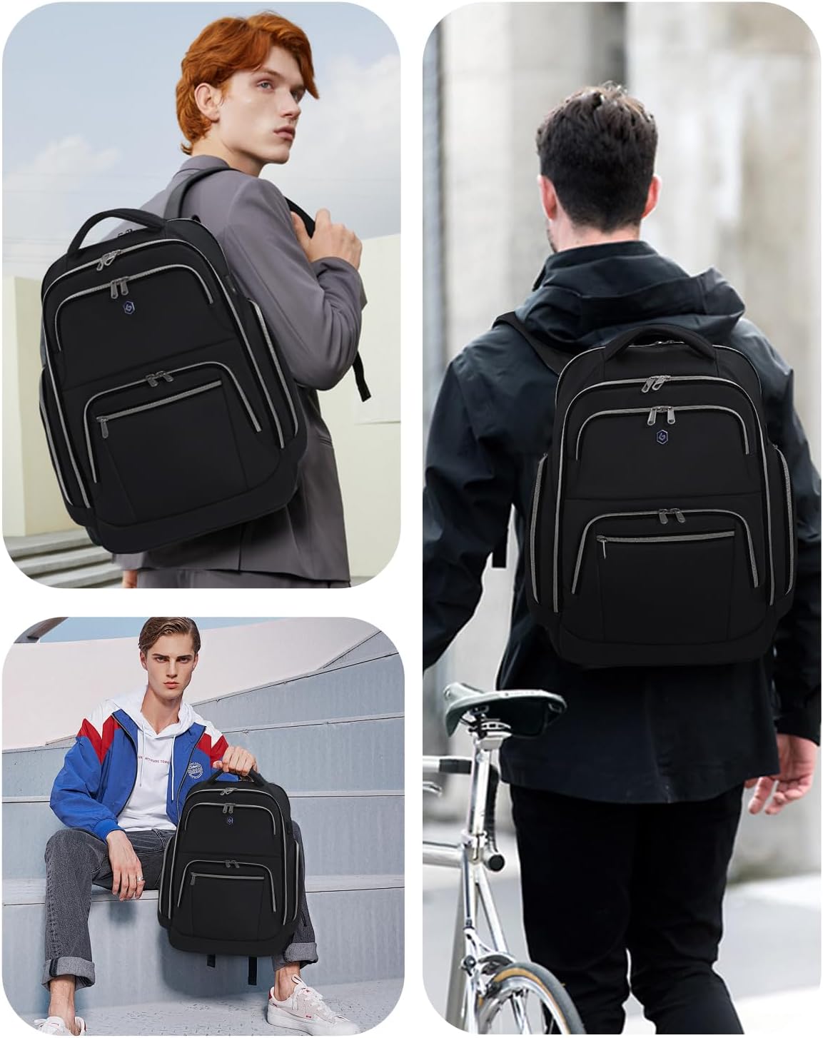 Blue Quartz Travel Laptop Backpack, Business Anti Theft Sturdy Work Bag with USB Charging Port, Airplane Approved College Computer Bag Gifts for Men & Women, Fits 15.6 Inch Notebook, Pure Black