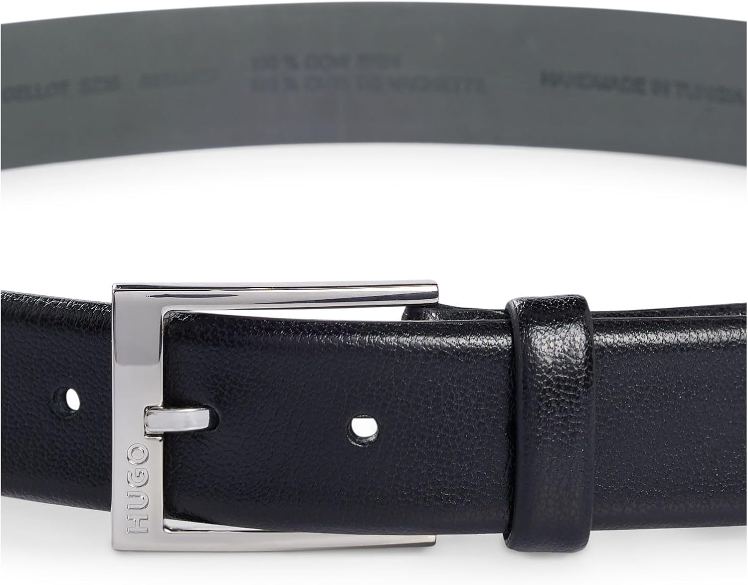 BOSS Gellot Belt in Black. This Hugo Boss Belt is made from 100% leather and features a polished silver pin buckle. HUGO BOSS logo engraved to the buckle. Leather Belt 5 hole belt Engraved BOSS logo Tab to buckle 100% Cow Skin Product Code: 50385627