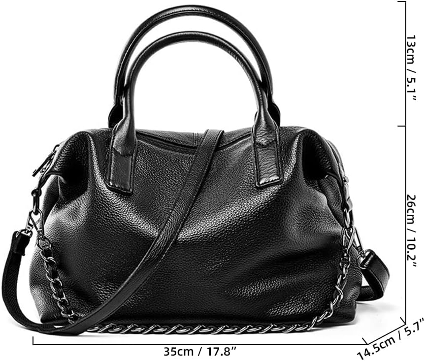 Boston Bag for Women Top Handle Tote Bag Large Capacity Shoulder Bag Genuine Leather Crossbody Bag with Chain