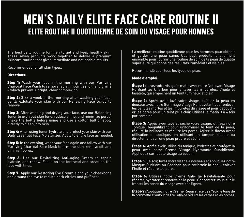 Brickell Men’s Daily Elite Face Care Routine II, Toner, Charcoal Facial Wash, Face Scrub, Anti-Aging Night Cream, Eye Cream, Charcoal Mask and Moisturizer, Natural and Organic, Scented