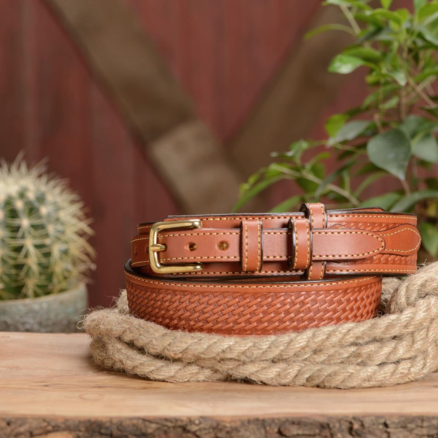 Bullhide Belts Mens Basket Weave Leather Belt, 1.5″ Wide