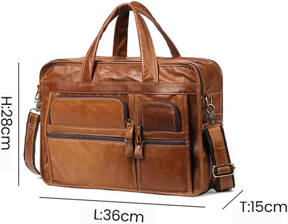 Business Travel Office Leather Briefcase Men 15.6 Inch Waterproof Vintage Vacation Laptop Bag Multiple Compartments