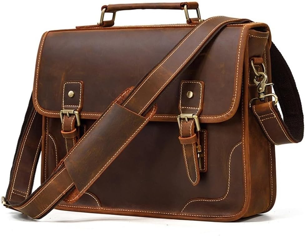 Business Travel Vacation Commuter Bag 13 Inch Vintage Leather Messenger Briefcase Men Waterproof Office