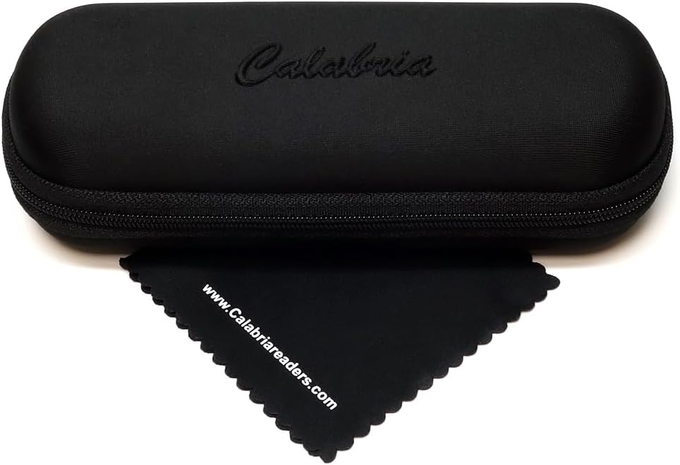 The precise dimensions of the Calabria R860 glasses ensure an accurate fit: Frame Width: 126mm (4.96 inches), Lens Width: 49mm (1.93 inches), Lens Height: 40mm (1.57 inches), Bridge Width: 14mm (0.55 inches), and Temple Length: 146mm (5.75 inches). Every pair comes with a semi-hard zipper case and a cleaning cloth, providing protection and easy maintenance for your glasses. Experience the optimal blend of style, comfort, and utility with Calabria R860 Reading Glasses.