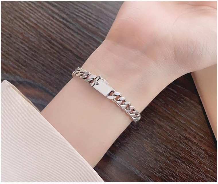 CAMBOS 18K White Gold Simple Cuban Hip Hop Bracelet Men’s and Women’s Bracelet Fashion Bracelet Christmas Gift