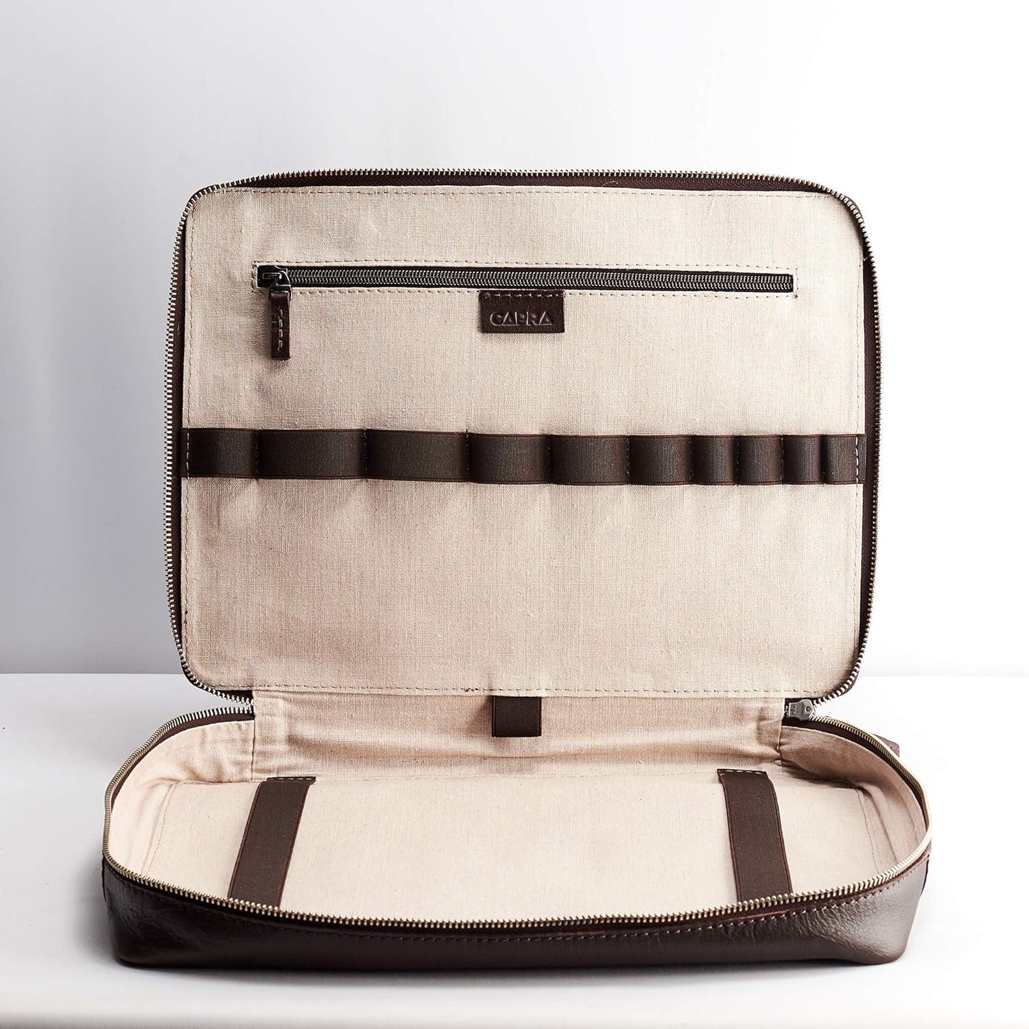 Capra Leather Travel Laptop Bag for Men, Dark Brown iPad Macbook Portfolio, Accessory Storage, Gadget Cable Organizer, Tech Mens Gift