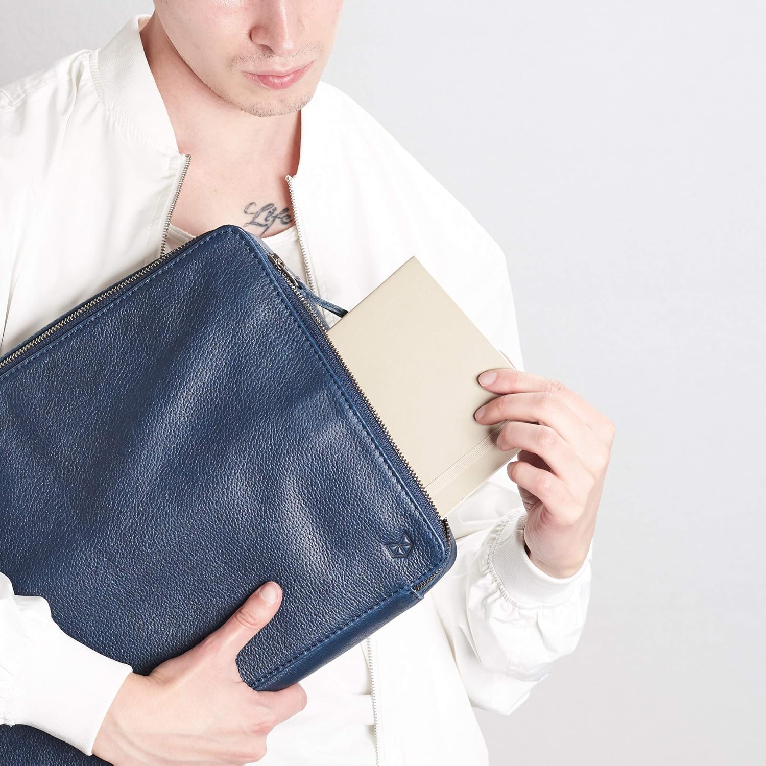 Capra Leather Travel Laptop Bag for Men,Blue iPad Macbook Portfolio, Accessory Storage, Gadget Cable Organizer, Tech Mens Gift