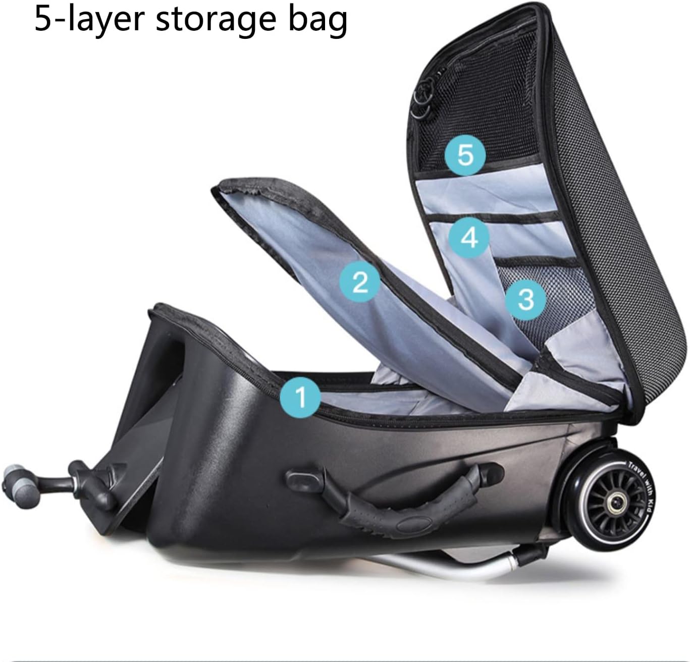 Carry on Luggage Kids Baby Sit on Scooter Men Women Travel Suitcase Bag Lazy Trolley Case – Convenient and Fun Suitcase with Built-in Scooter for Easy Travel