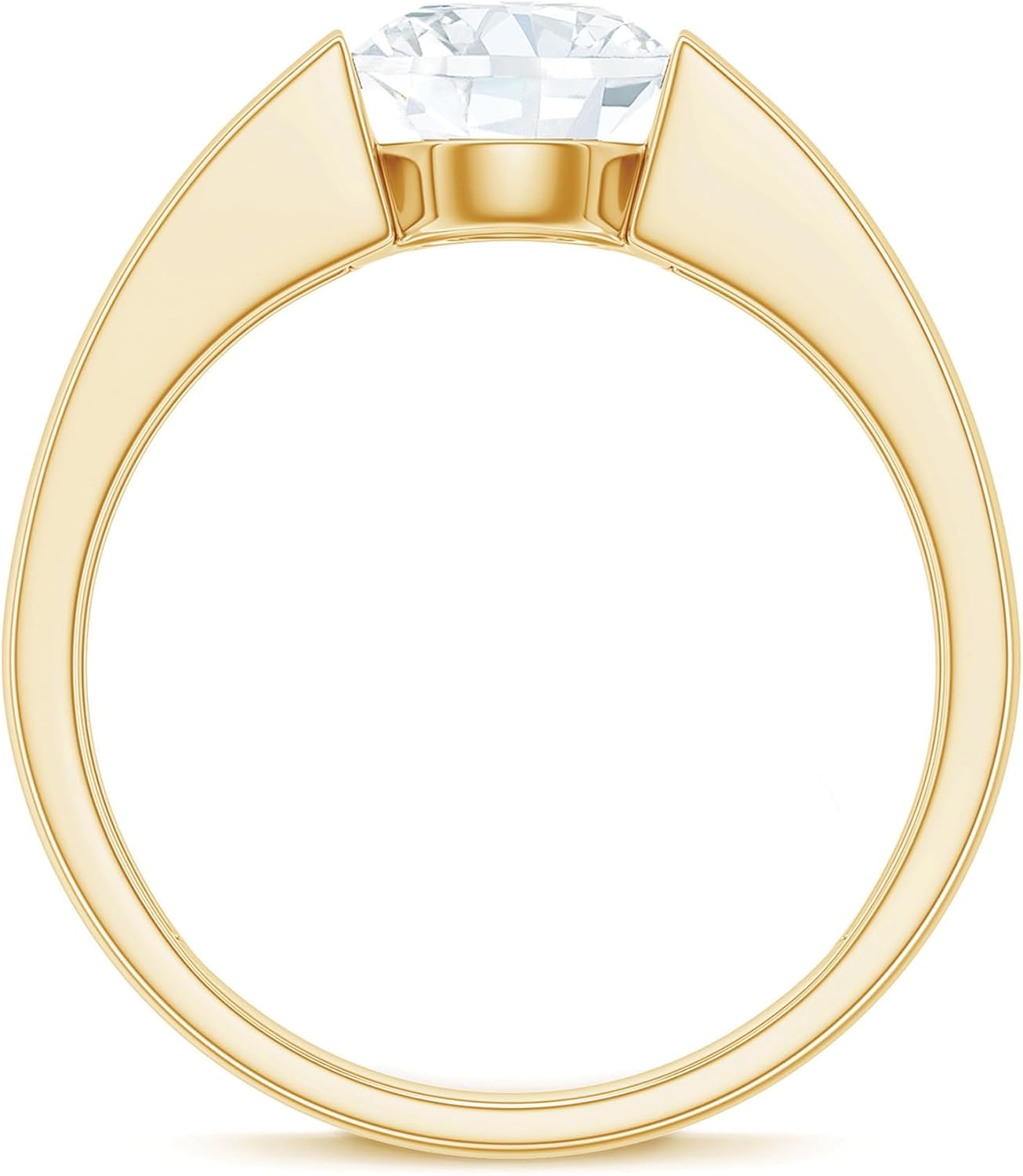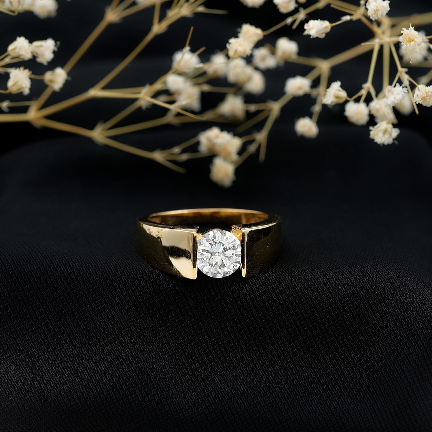 Embellished with an 8 mm Round Shape Moissanite in Tension Mount Setting, this Solitaire Engagement Ring is the perfect jewelry to amp up your look in seconds. The single stone Moissanite with a plain wide shank is a flattering addition. Either dressed up or down, this Certified Moissanite Ring looks gorgeous in every way. It is made up of a bold and chunky solitaire design that is contemporary and can be worn daily. A classic design and a luxurious style with extra brilliance.