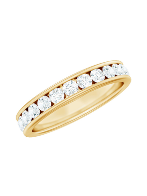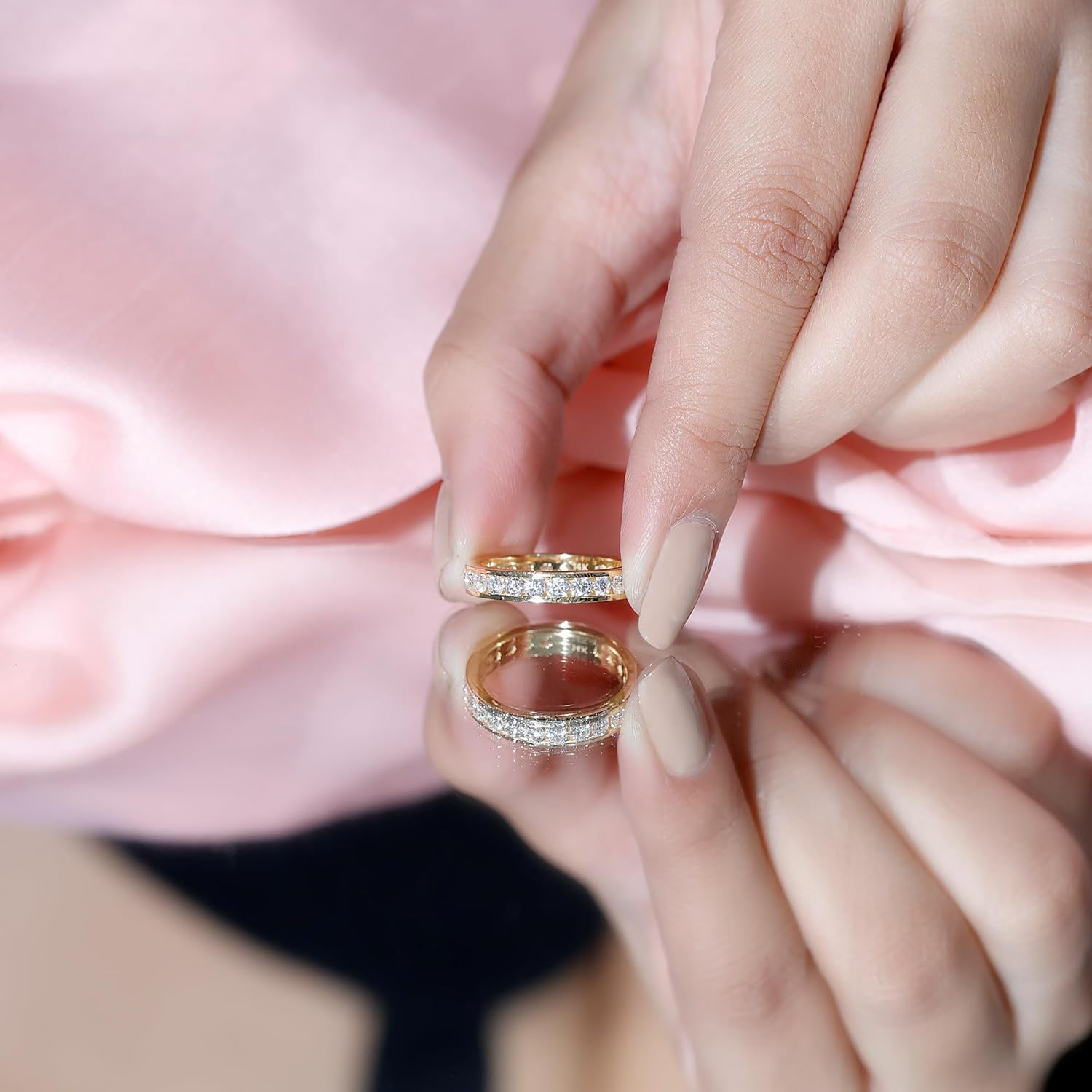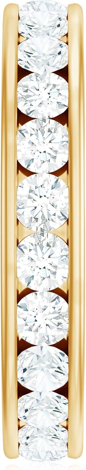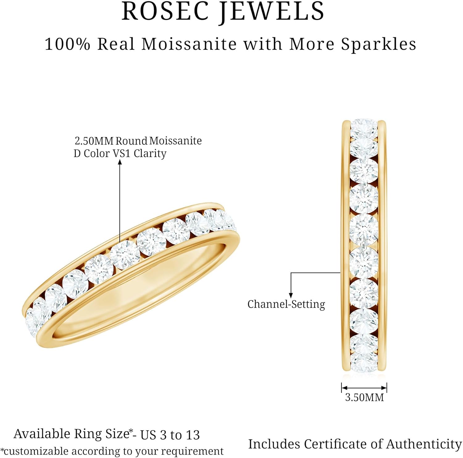 Express your eternal love with this stunning Moissanite Eternity Ring, sparkling with its breathtaking design and elegance. Made stunning this Eternity Wedding Ring has Channel Set Round brilliant cut Moissanite that allows light to reach the stones from multiple angles and enhance their sparkle. This classic Moissanite Wedding Band is the definition of understated luxury and is perfect as a wedding band or to add to your favorite ring stack.
