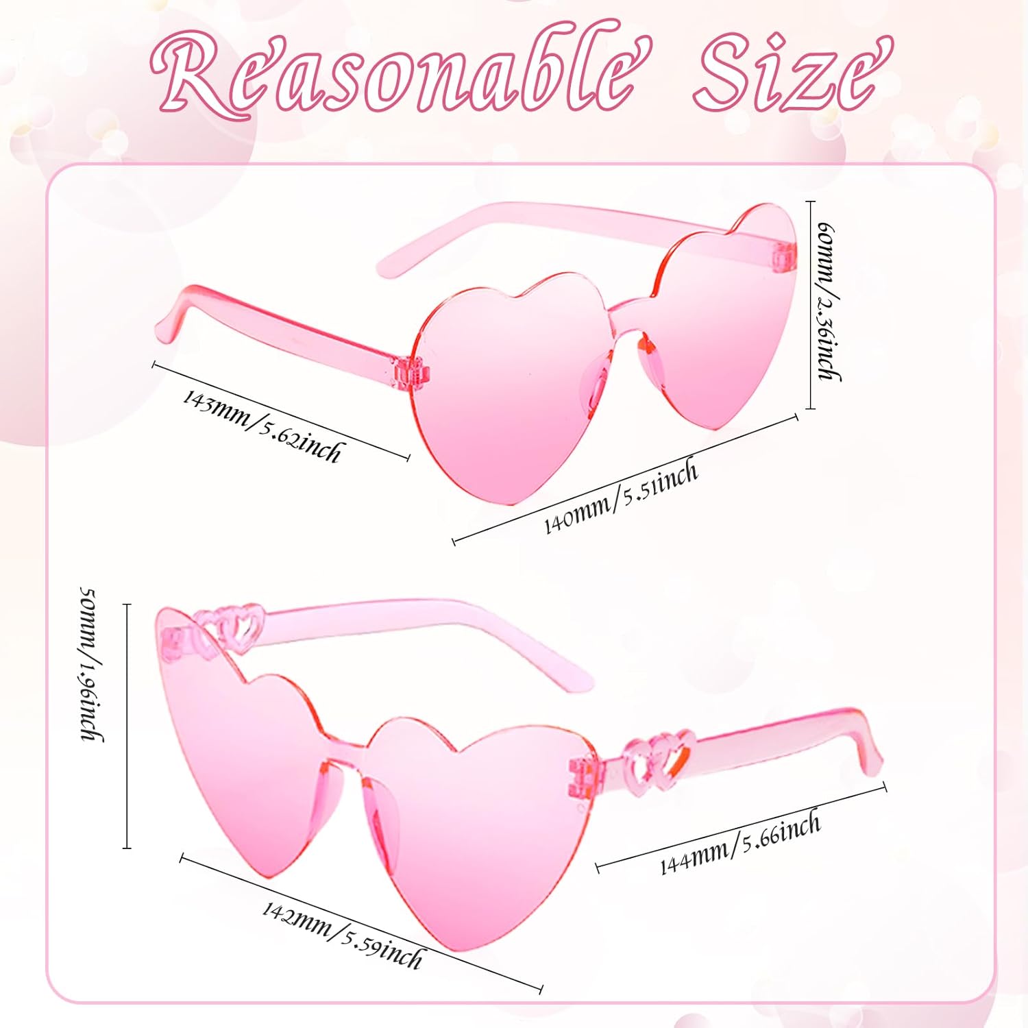 Chicpop 60 Pairs Heart Shaped Rimless Sunglasses for Women Heart Sunglasses Bulk Valentines Day Gifts for Girls