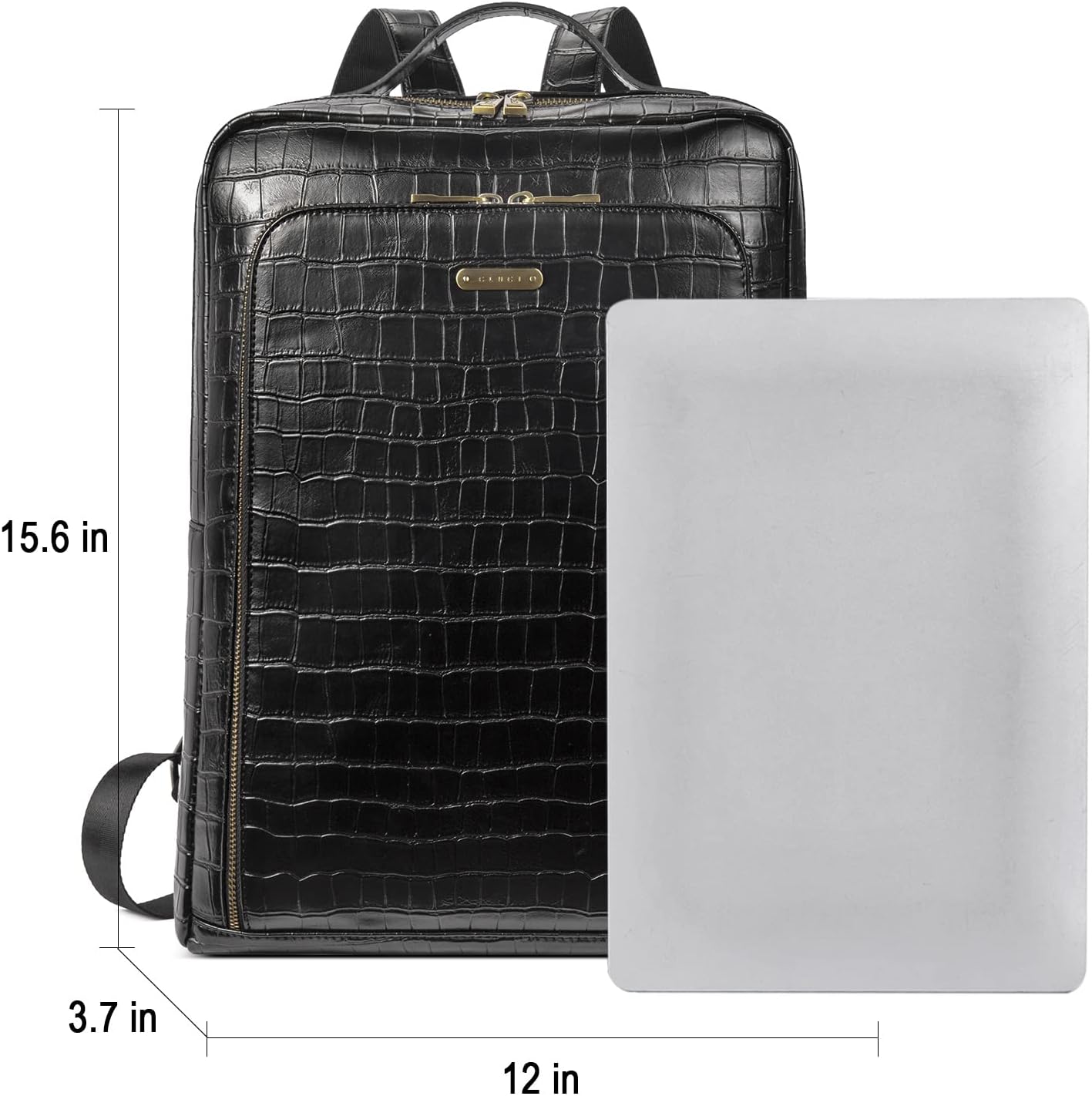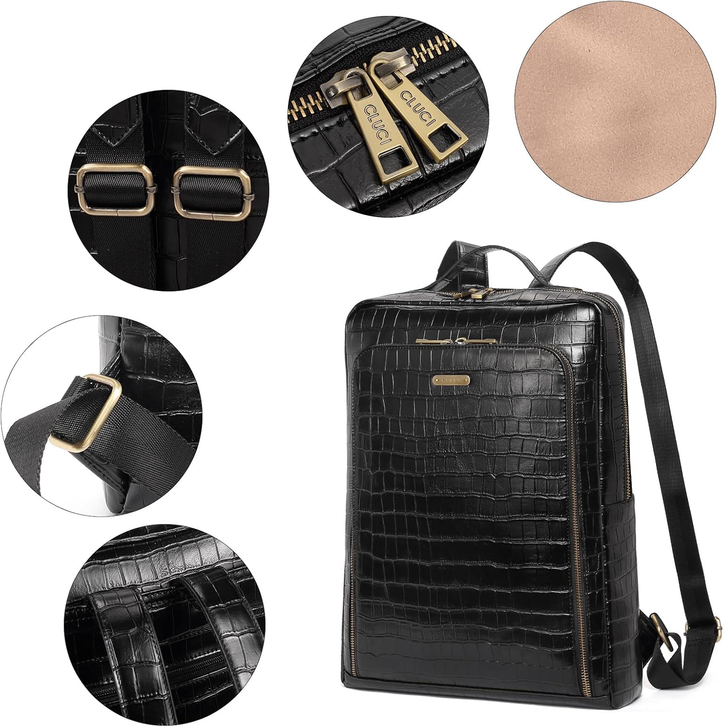 Top Quality Leather Material: This women laptop backpack is made of top quality PU leather with gun color hardware and CLUCI logo,Top U zippers and soft premium polyester lining, which is fashionable and durable.