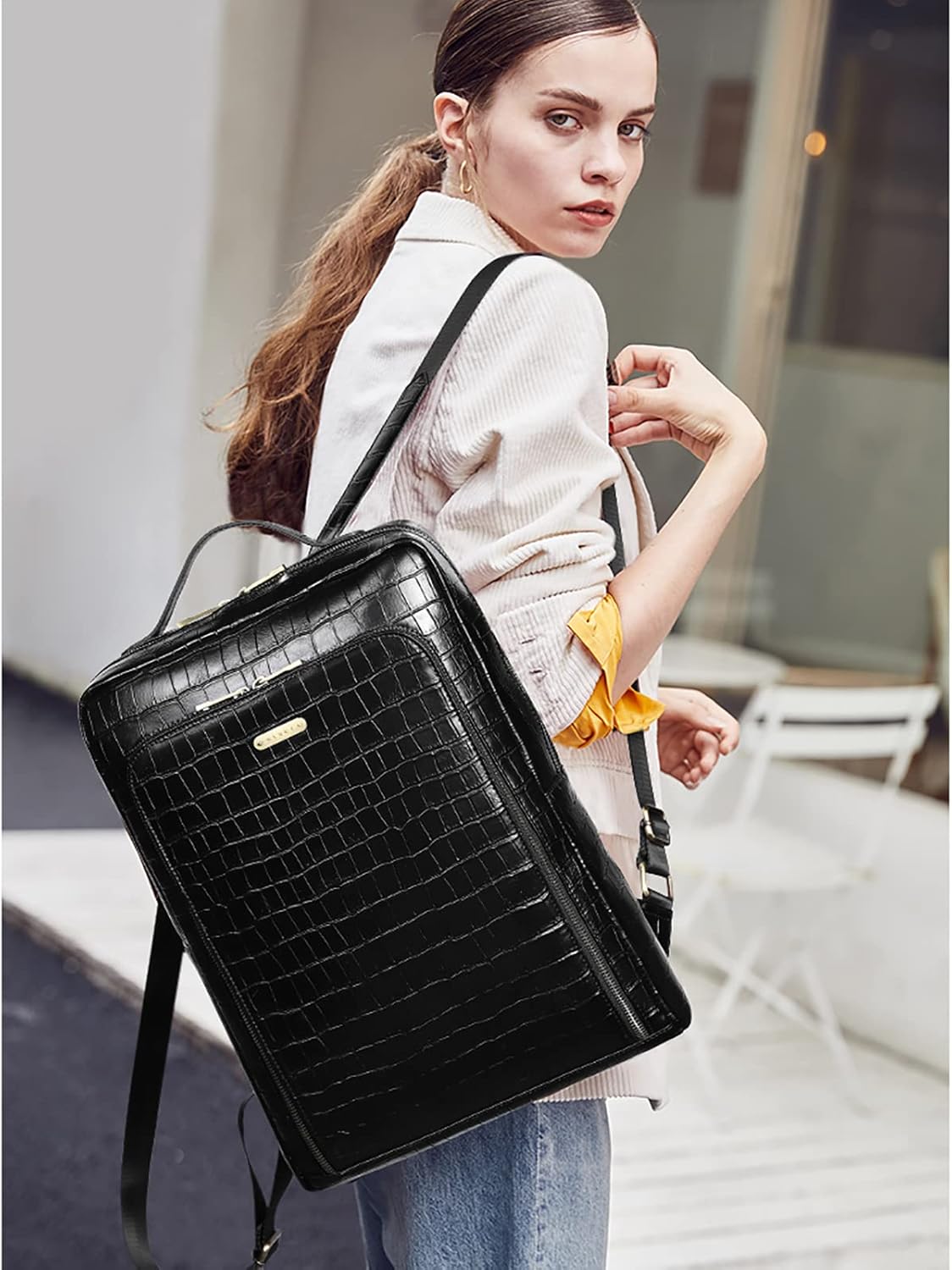 Well-Design:The laptop backpack for women is device with a luggage strap which fits most upright trolley handles and can be carried without hands and shoulder, may reduce your burden during travel.Besides, reinforced stitching allows the backpack purse to withstand heavy loads. Adjustable shoulder straps can meet your different length needs,classy and vintage appearance.