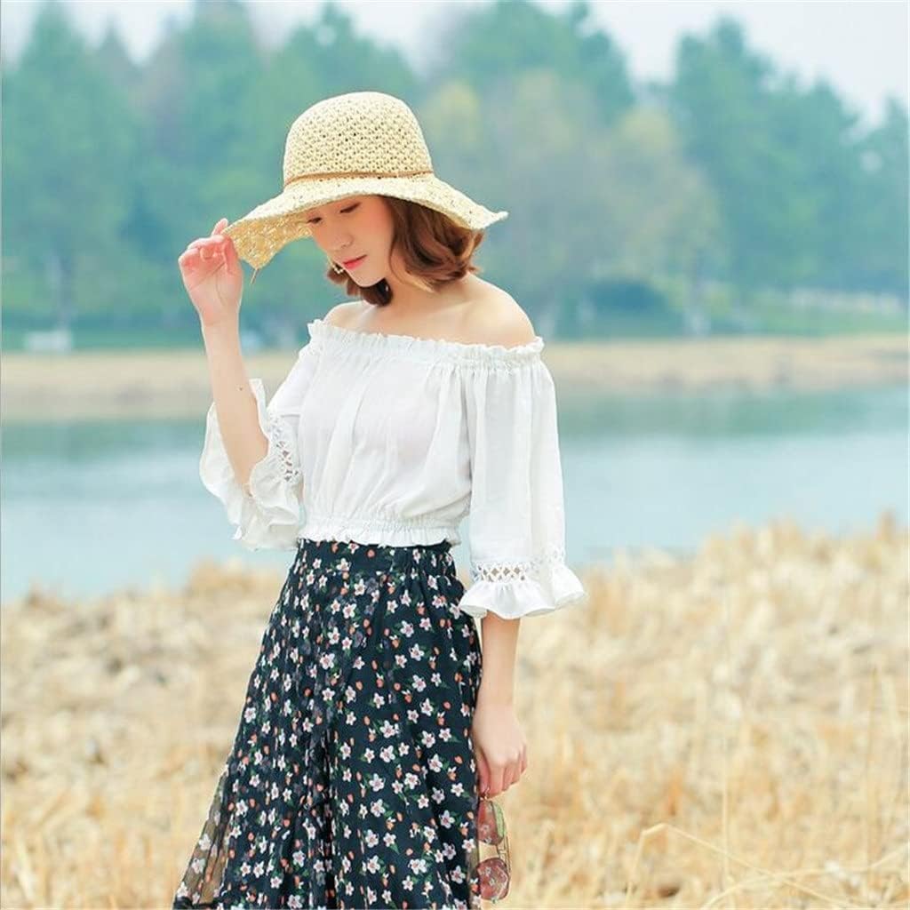 DFHBFG Flat Top Hat Spring Women’s Trip Caps Leisure Pearl Beach Sun Hats Black Fashion Flower Girl Hat