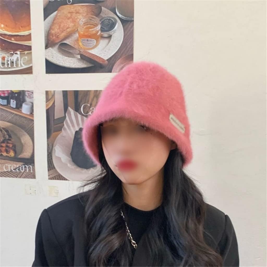 DFHBFG Hat Children Korean Rabbit Hair Bucket Hat Autumn and Winter Versatile Warm Basin Hat Plush Fisherman Hat