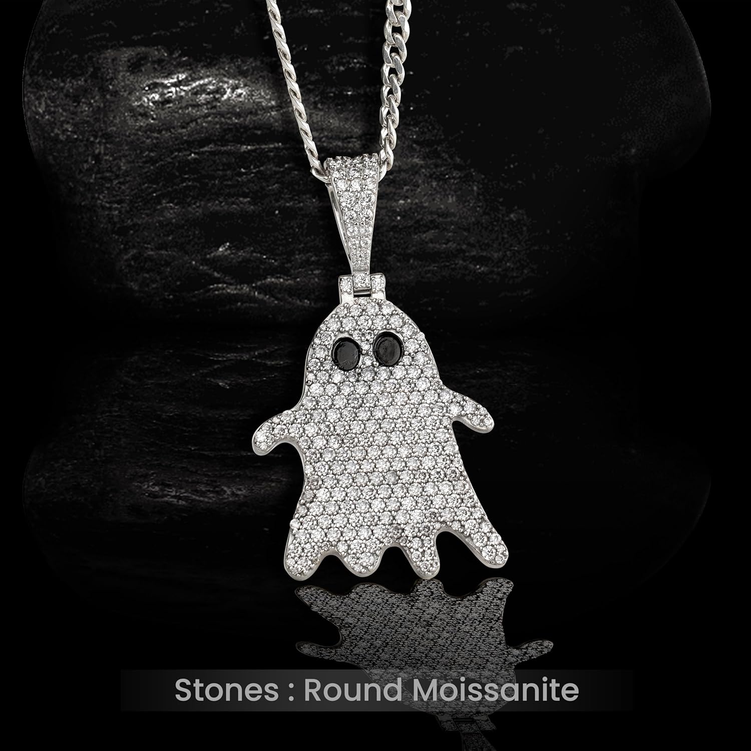 Dfine Jewelry Store Iced Out Ghost Necklace 925 Sterling Silver VVS Moissanite Fully Diamond Icy Ghost Pendant Locket with Chain Biker Gothic Bling Hip Hop Jewelry Gift Men Women