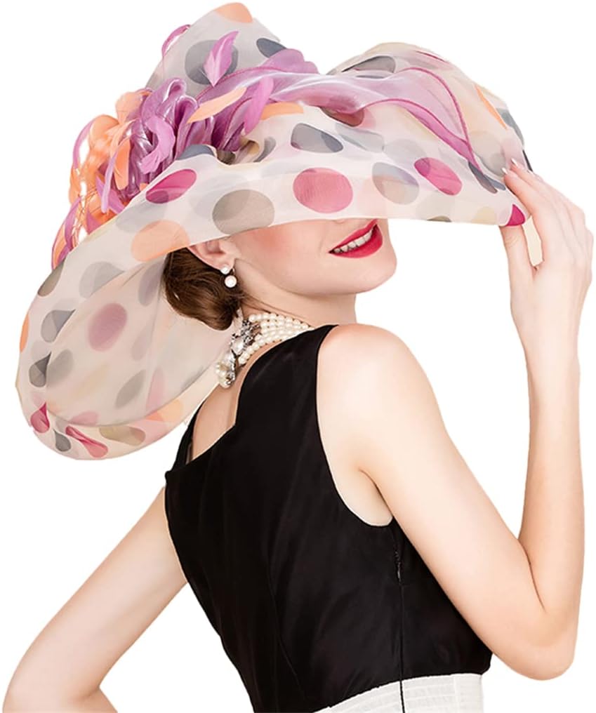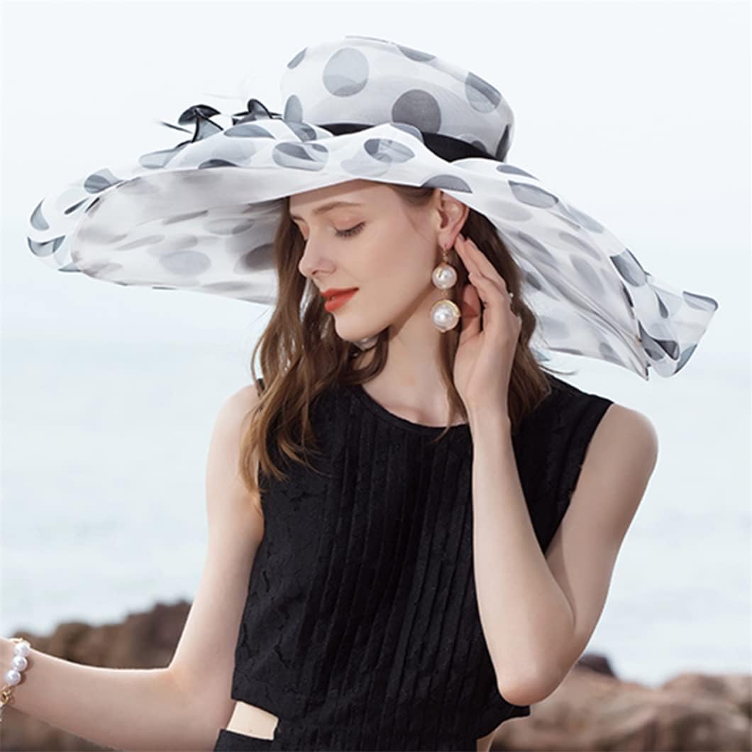 Disimlarl Oversized Brim Dot Organza Top Hats for Women Beach Visor Sun Flowers Lady Wavy Edge Derby Cap