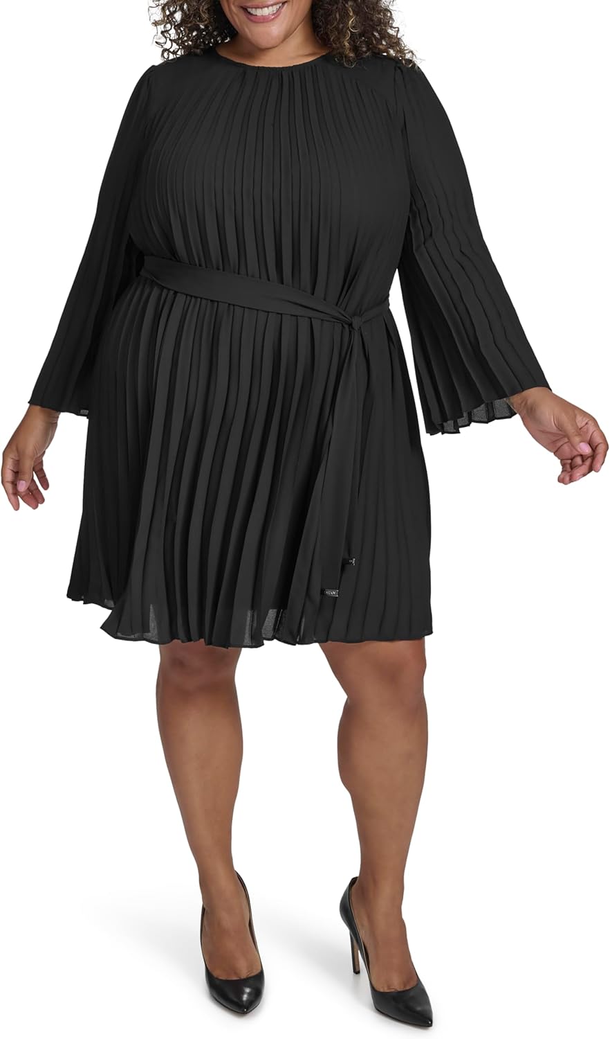 This DKNY Women’s Dresses Dress is a long sleeve jewel neck mini dress tie waist belt a-line silhouette