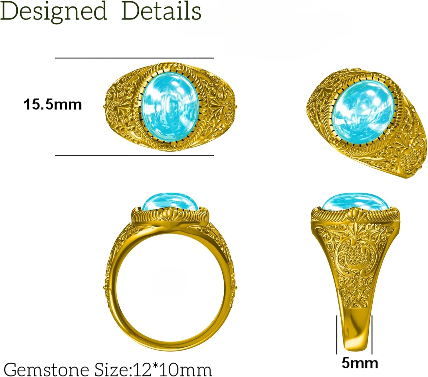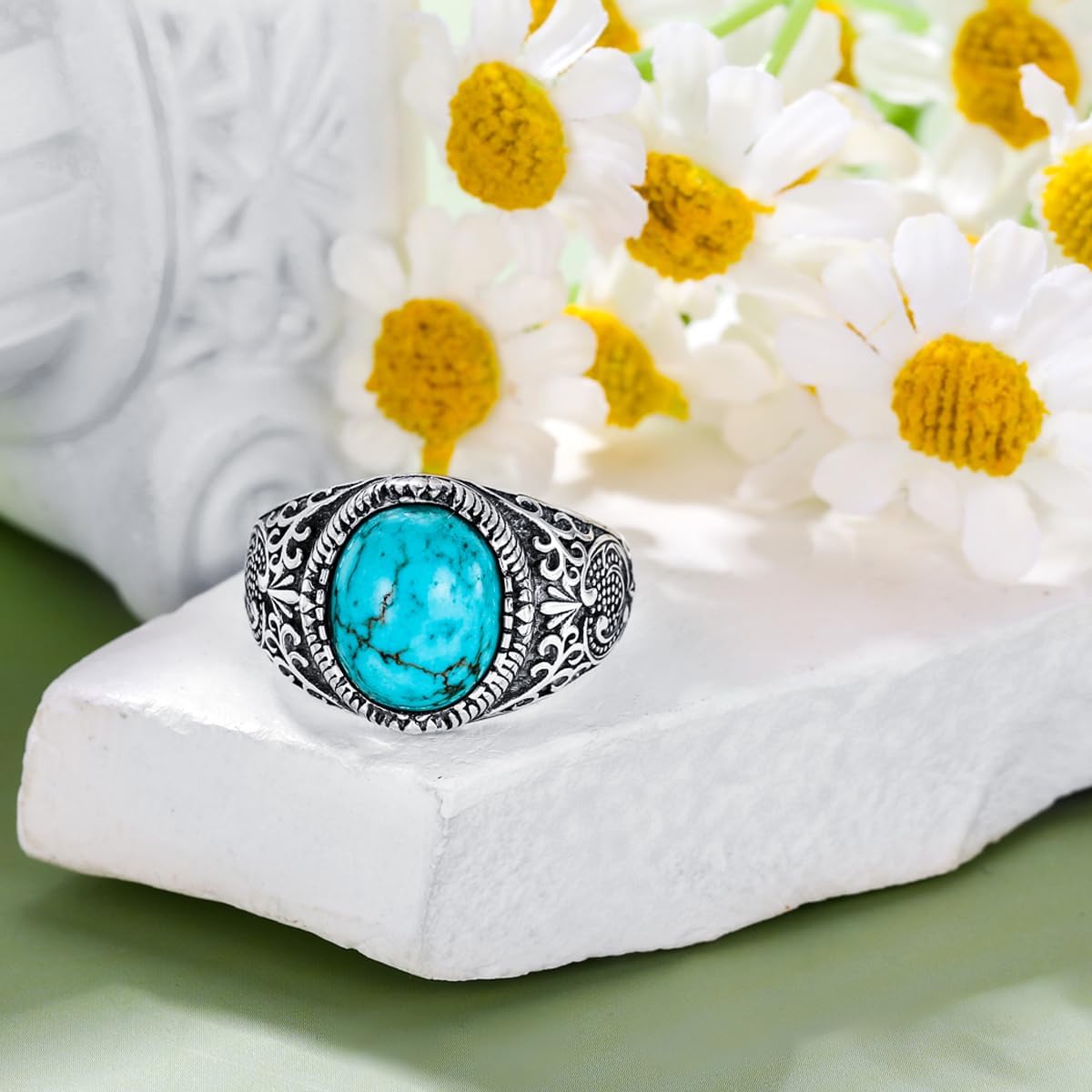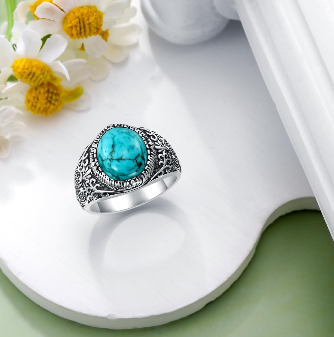 DOLIOX 12x10mm Genuine Turquoise Rings for Men, Sterling Silver Native American Gem Oval Thumb Ring for Dad Father Jewelry Gift for him,Anillos De Hombre, Men’s Ring for Gift for Men