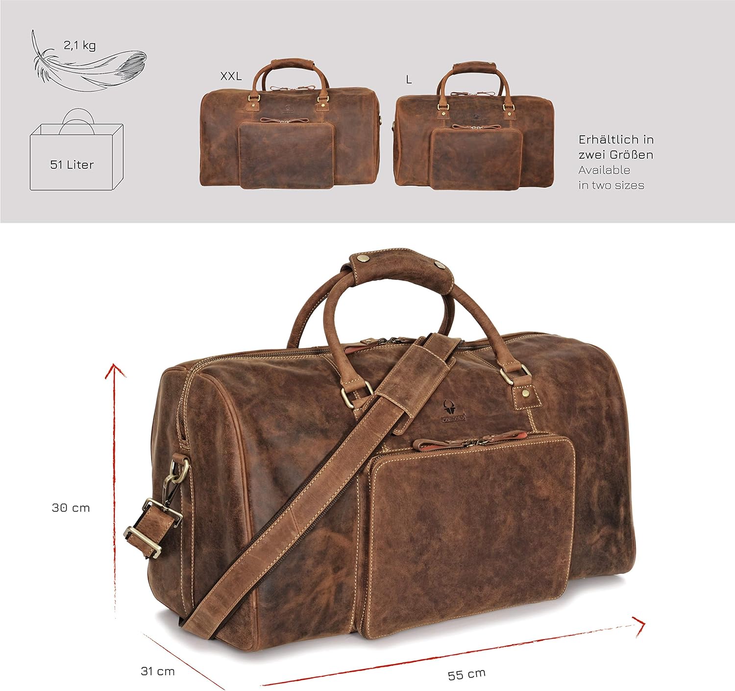 DONBOLSO Weekender Naples I Handcrafted Leather Men’s Travel Bag I Genuine Leather Duffle Bag I Carry-on Luggage Overnight Gym I XXL with 51 litres I Classic Donbolso Vintage Brown