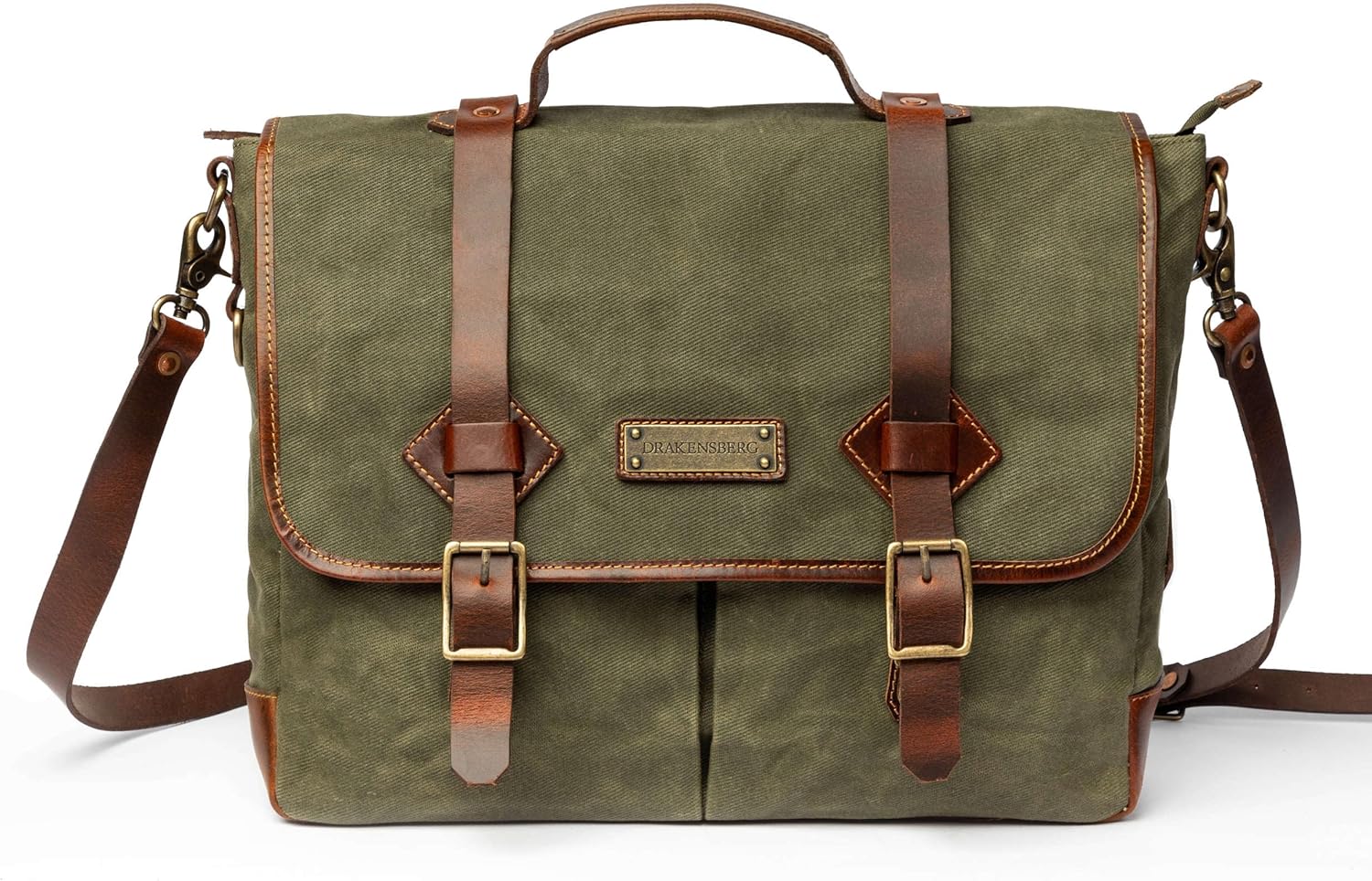 Be the first to review “DRAKENSBERG ‘Marty’ Men’s Shoulder Bag with 15 Inch Laptop Compartment, Waxed Canvas with Leather, Water-Repellent Briefcase, 14L – Forest Green, DR00623, Forest green.”
