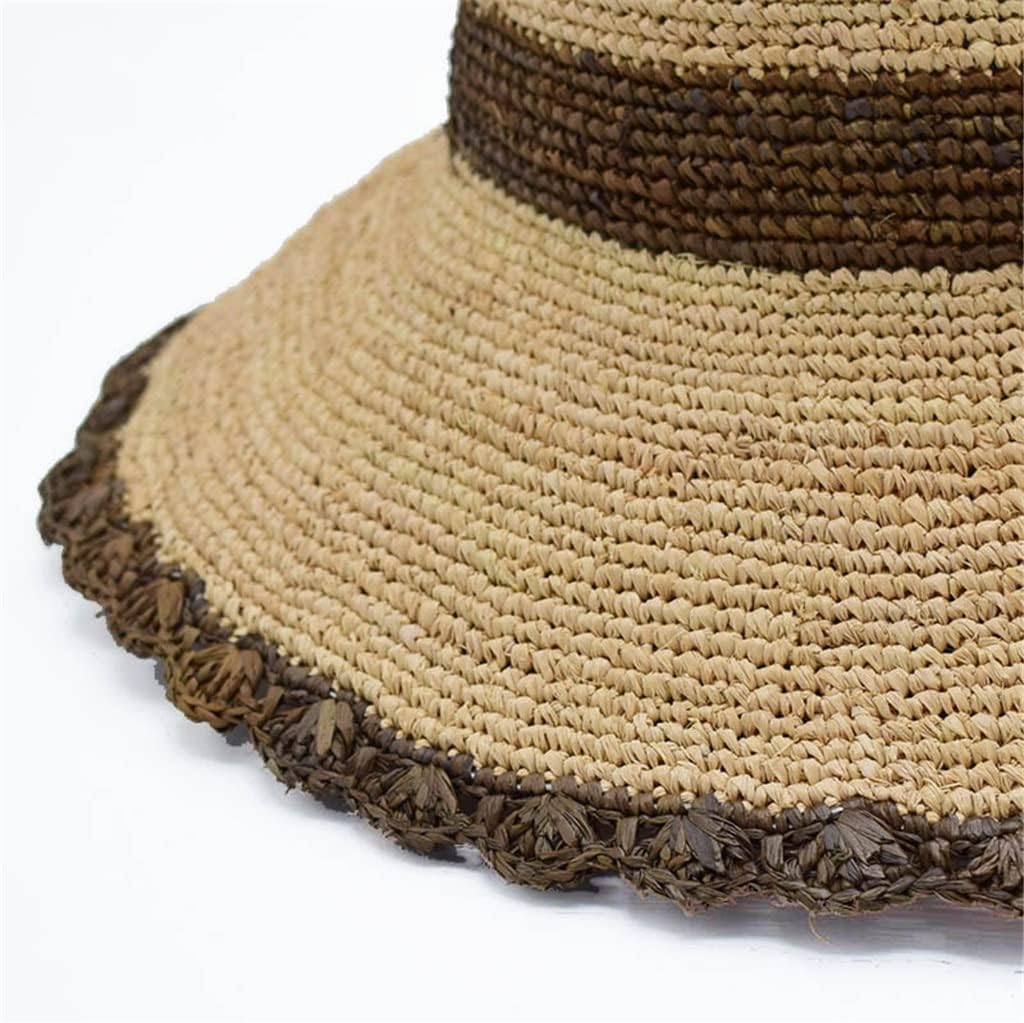 ERTXGBA Hand Hooked Colourful Raffia Hat Children’s Round Top Basin Cap Foldable Seaside Sun Hat