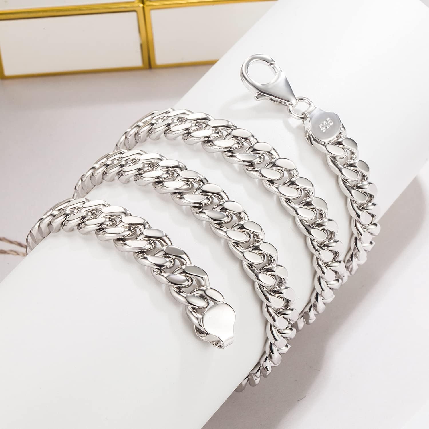 Fashion 925 Sterling Silver Solid Miami Cuban Link Chain Necklace 8MM &12MM- Curb Cuban Thick Big Link Choker For Men Boys-20 “22” 24 “26” 28″ Fine Jewelry