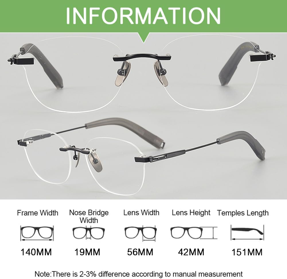 Lightweight and elegant:Everyone needs a great pair of reading glasses,Fashion Rimless shape is suitable for any age and for any shape face,clarity Resin Lenses,Adjustable titanium nose rest to prevent glasses from slipping off.