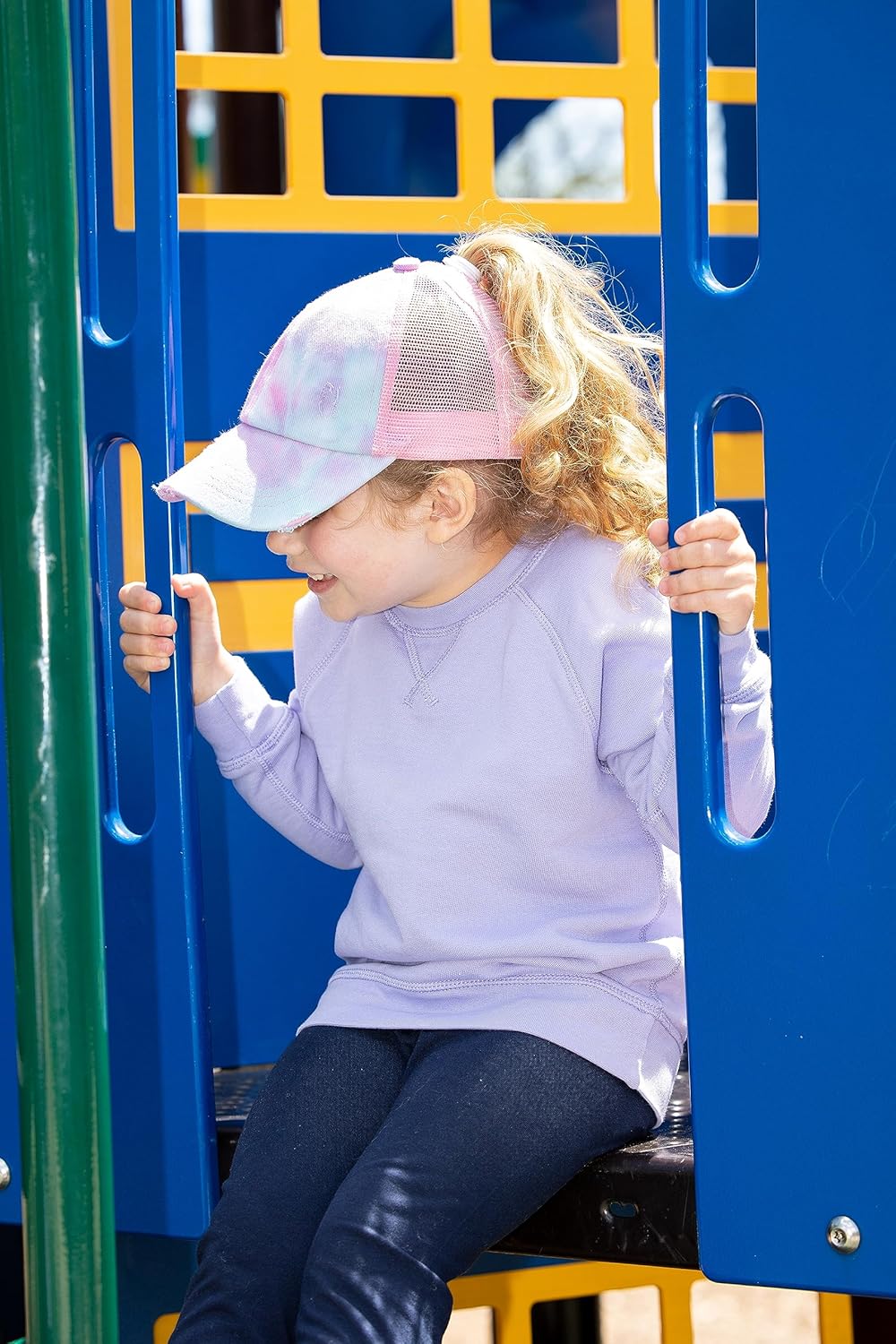 Funky Junque Girl’s Criss Cross Hat Messy Bun High Ponytail Kids Baseball Cap