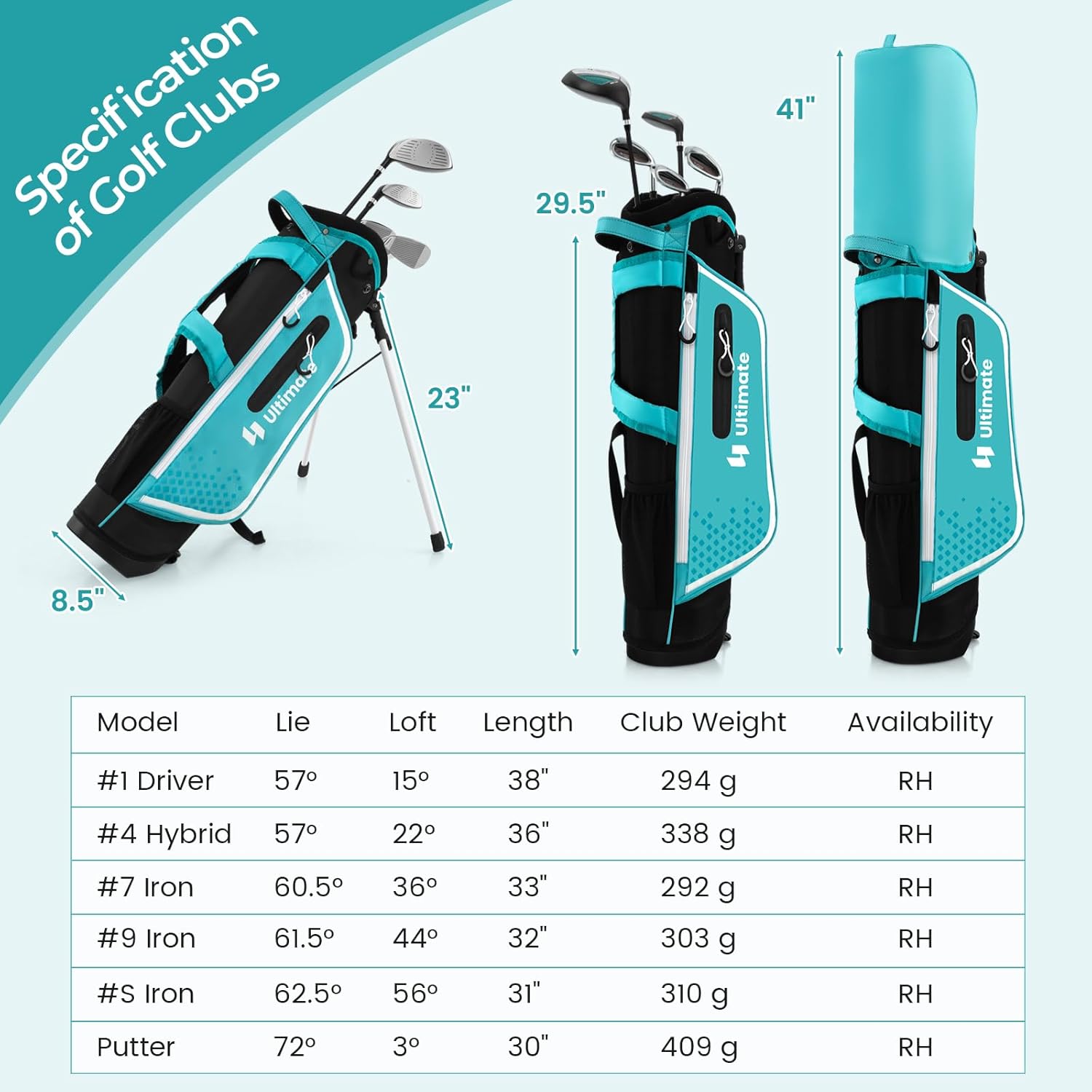 Goplus Junior Complete Golf Club Set for Kids, Right Hand Golf Clubs with Stand Bag, Rain Hood, Golf Practice Set for Ages 5-7,8-10,11-13 Boys Girls