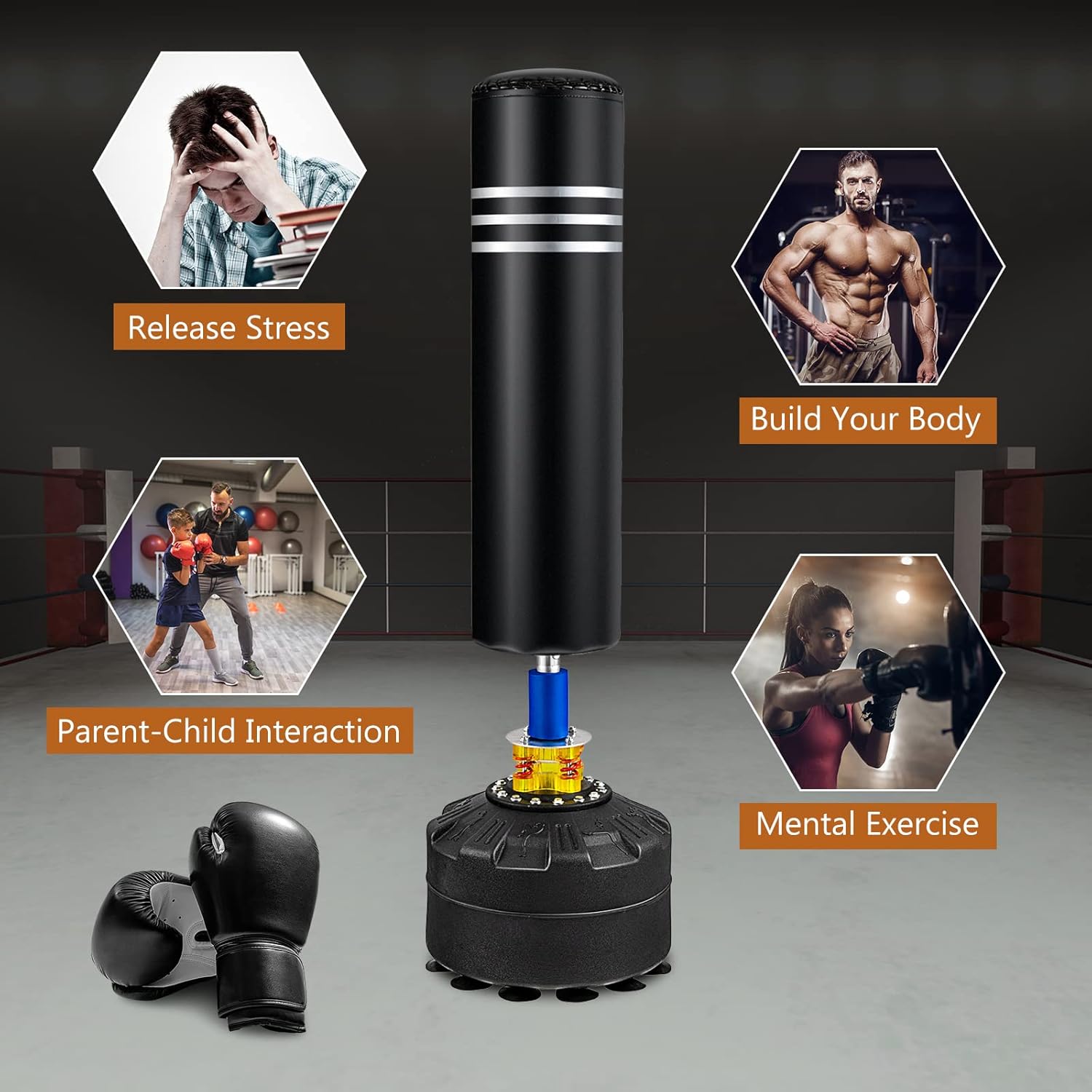 Freestanding Punching Bag: Stands approx. 70” tall, GYMAX punching bag is suitable for kids, youth and adults, perfect as a family gift to increase family bonds, release stress and daily workout. Check out now and enjoy boxing simply at home!