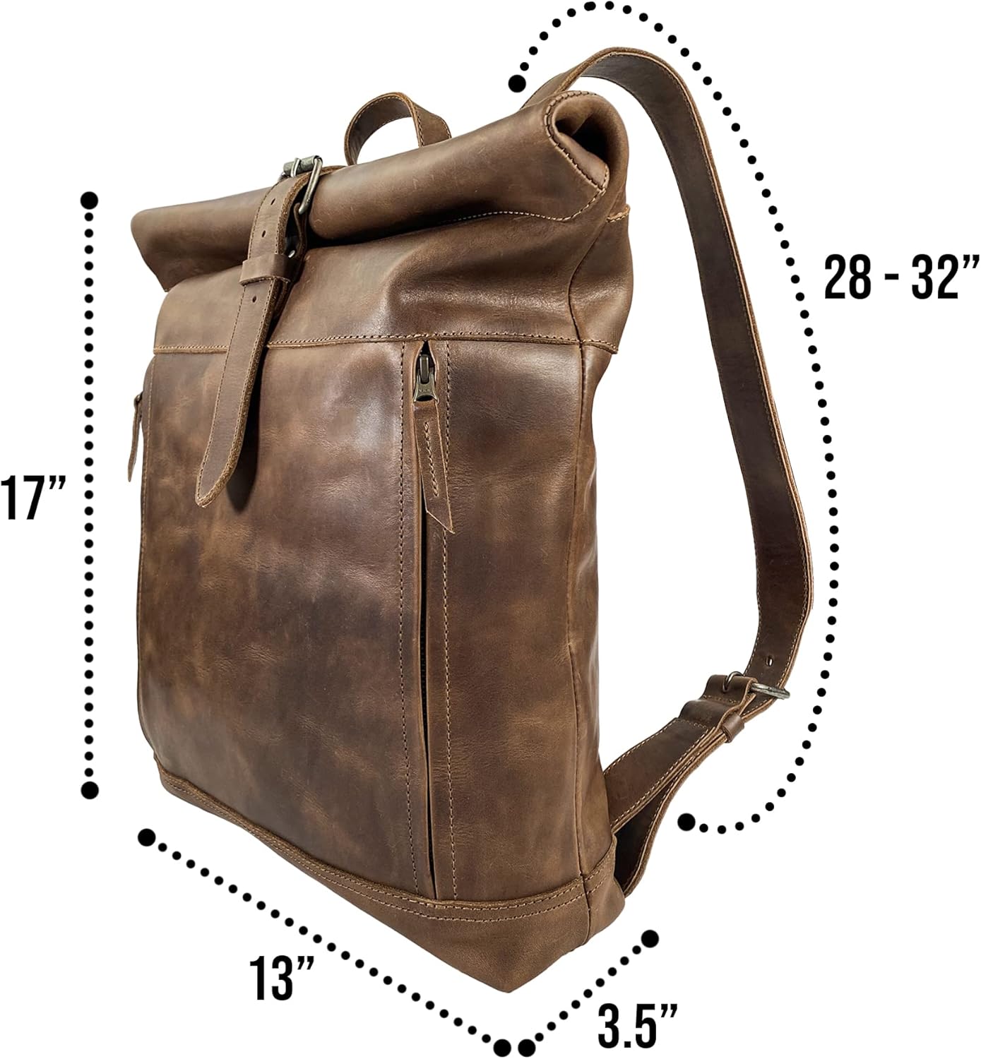 Hide & Drink, Roll Top Backpack, Vintage Style Rucksack with Adjustable Shoulder Straps, Travel Accessory, Full Grain Leather, Handmade, Bourbon Brown, Bourbon Brown, One Size, Rucksack Backpacks