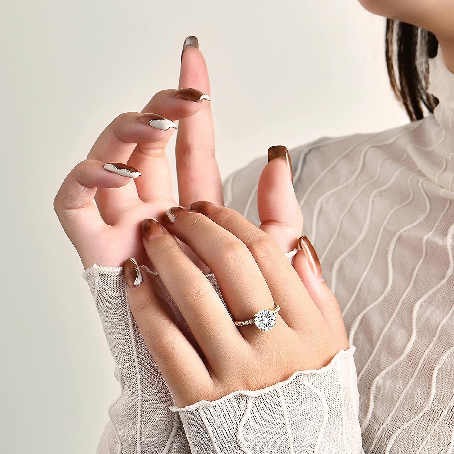 Jelafu 3CT 10K/14K/18K Solid Gold Moissanite Engagement Ring for Women, Optional 3 Colors, Available for Engraving, Personalized Gift for Wife Girlfriend D Color VVS1 Clarity Simulated Diamond