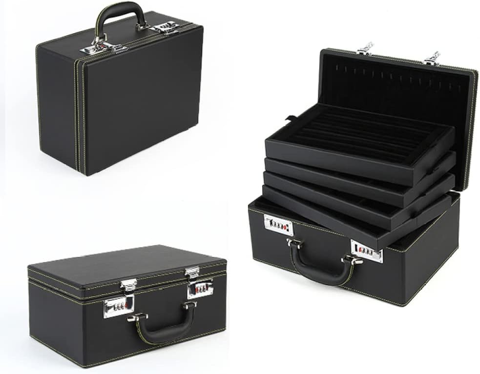 14 hooks inside of the top cover for convenient necklaces hanging; Combination lock design, anti-theft.Portable design, can be carried at anywhere.