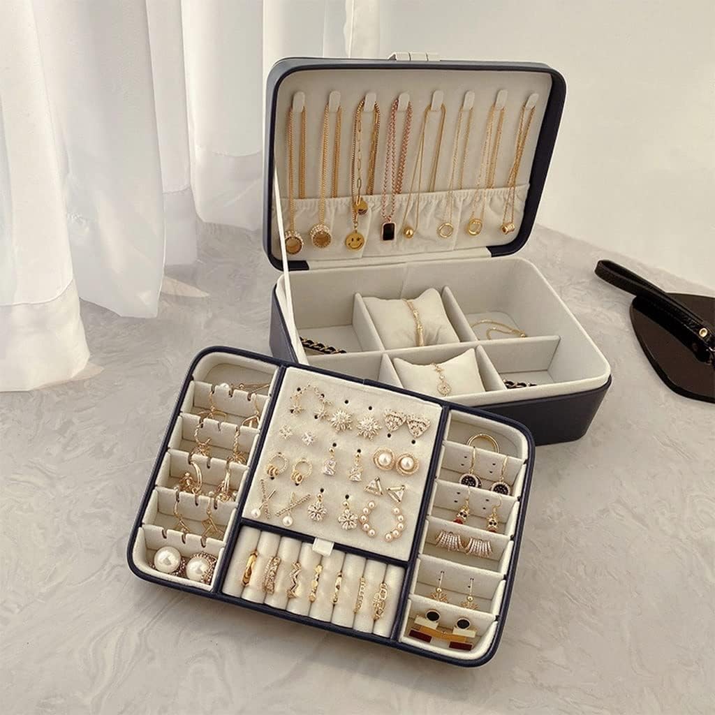 It can meet different needs and keep all kinds of jewelry in order, neat and beautiful.Woven texture design and high-quality materials: The unique weaving pattern on the PU leather makes the jewelry box look more advanced.It can be beautifully placed on the dressing table, bedside table, bathroom counter or dressing table, saving a lot of space and making your room look.Dimensions (length x width x height