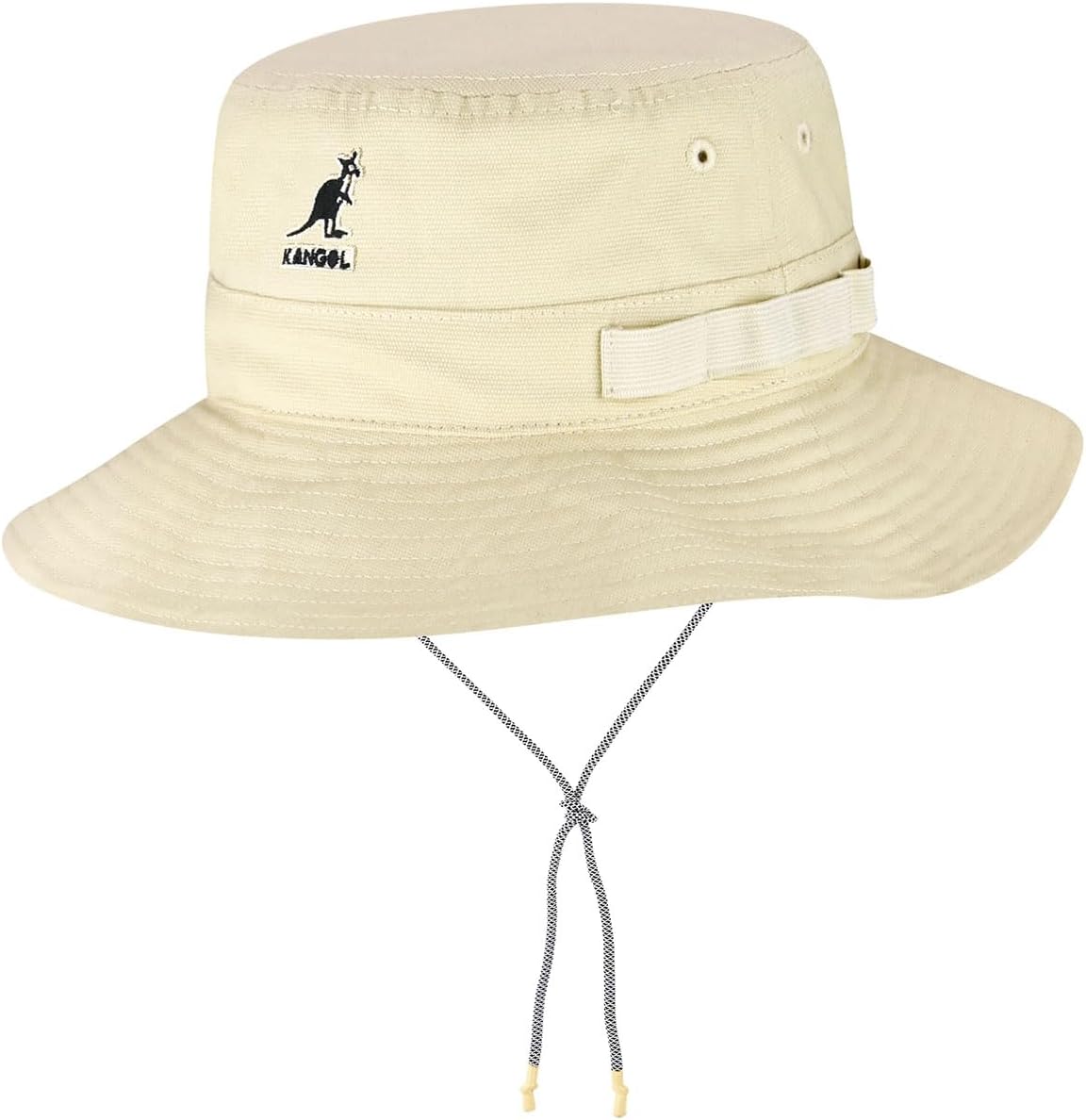 The Utility Cords Jungle Hat by Kangol is a cotton canvas wider brim bucket. It features utility loops and a chin cord, so you can always make sure you where ever you go. The cords are finished with a dipped color tip for an added touch of fun. The Utility Cords Jungle Hat will be your new summer-time favorite while you explore your own personal jungles.