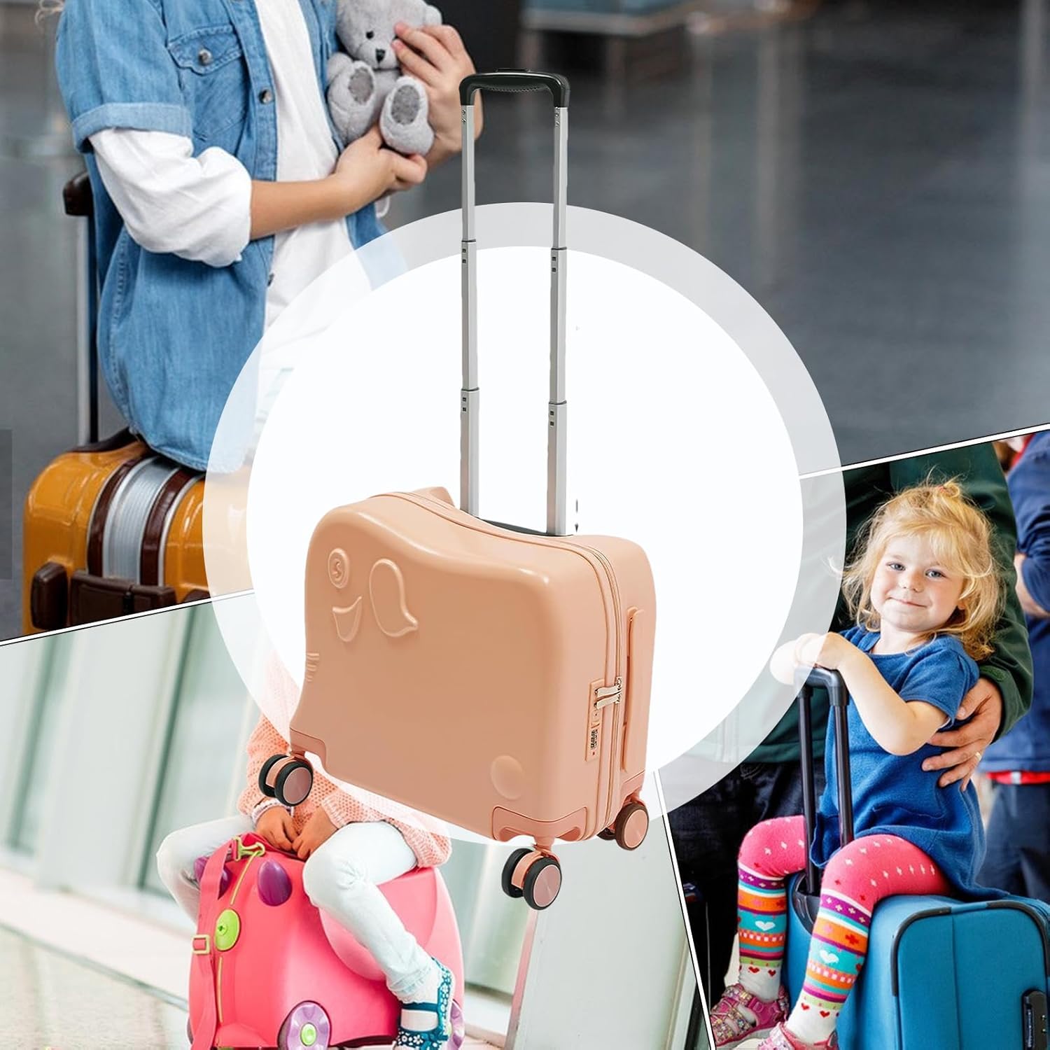 and Creative: Our kids carry-on luggage features a and cute cartoon elephant shape that makes it stand out. It’s both beautiful and practical, perfect for parents looking to make travel fun for their children