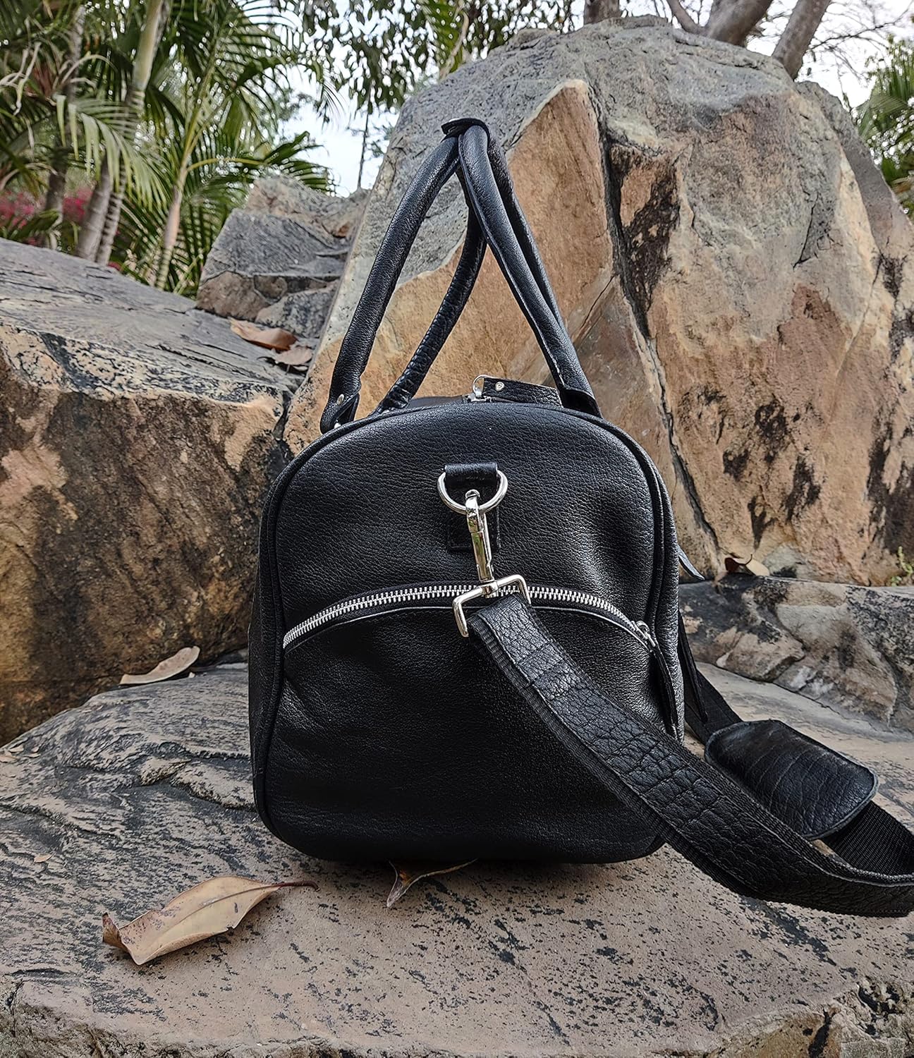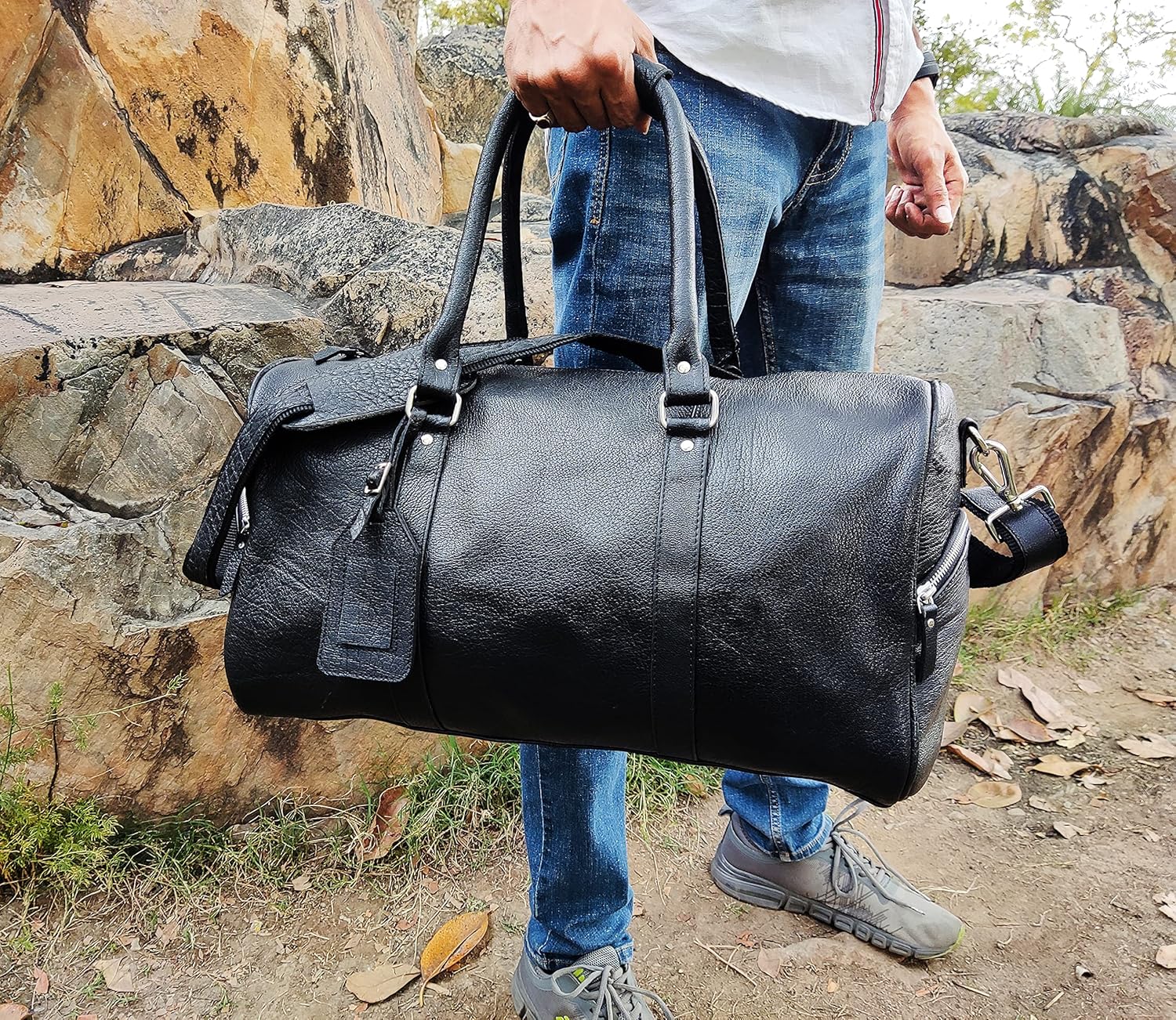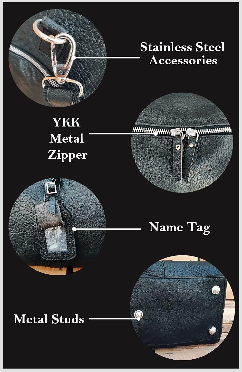 The Leather & Stitches is an Indian organization consists of various regional artisans who craft premium quality of handmade products. We try our best to bring these artisans a platform where they can upscale their business. The Leather Duffle is crafted out of genuine Buffalo leather. The duffle has a unisex appeal, ideal for both Men and Women. The Black duffle has been designed while keeping all the traveler’s needs in mind. We have used full grain leather, which is highly durable and beautiful as well. The bag is equipped with genuine Stainless steel accessories. It is a perfect gift for your loved ones and people who are avid travelers. The Leather Duffel is highly preferred gift for wedding occasions; our customers have loved it as Groomsmen Gift.
